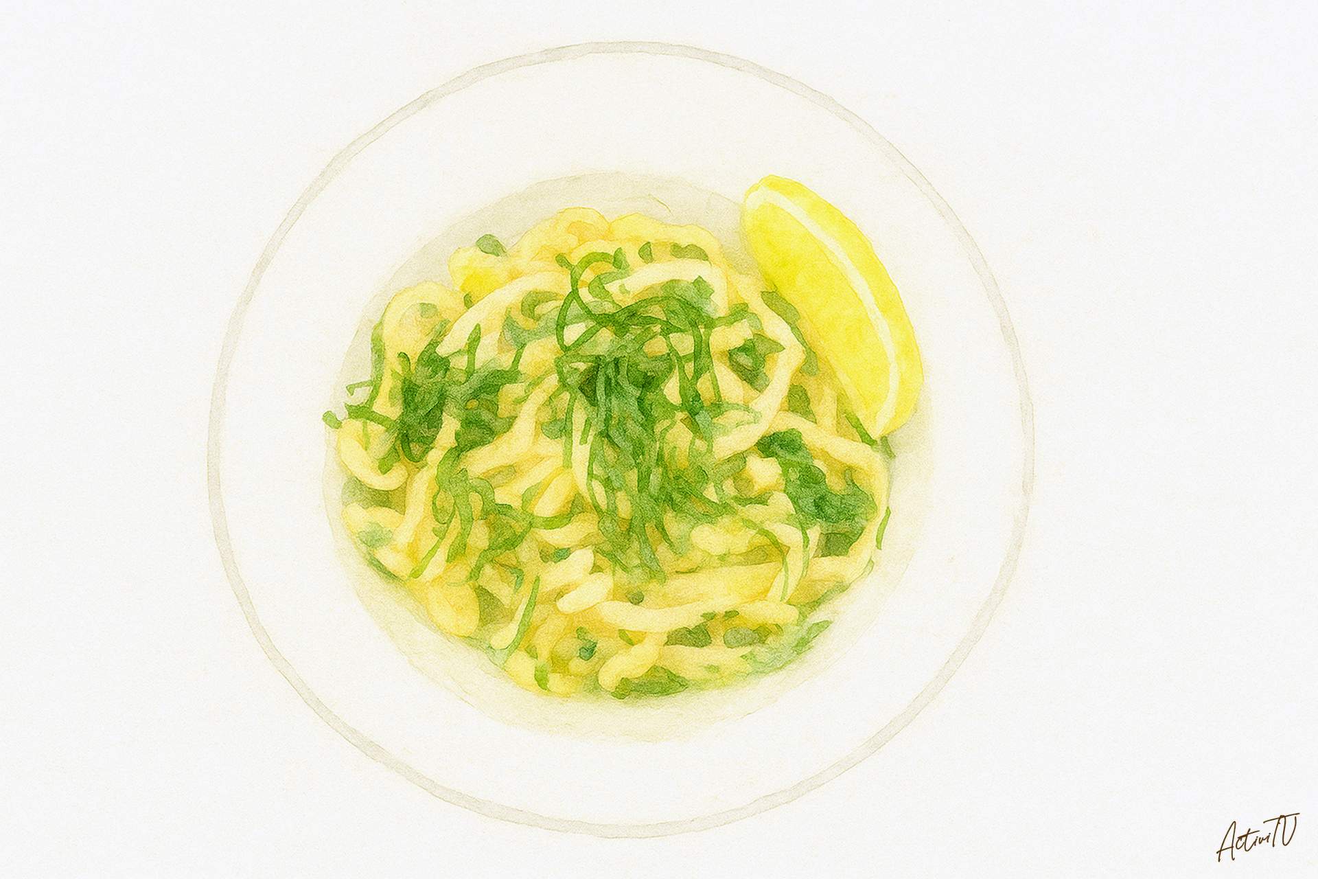 明太子の旨味と香り高い青じそをたっぷり合わせた、シンプルなのに満足感のある明太大葉うどんです。冷凍うどんを使うので下準備いらずで、電子レンジを使えば火を使わずにさっと作れるのも嬉しいポイントです。オリーブ油とマヨネーズを加えることでコクのあるまろやかなソースになり、おろしにんにくがほどよいパンチをプラスします。