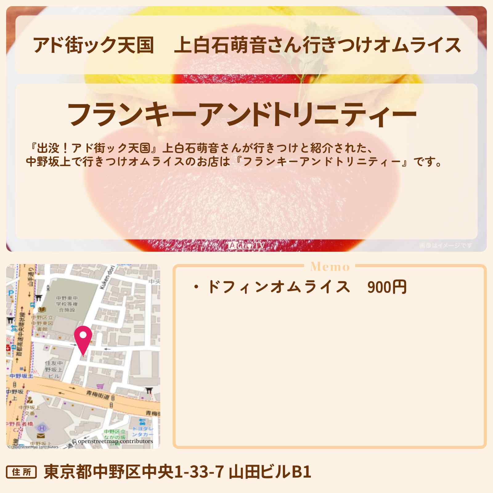 上白石萌音さん行きつけ ぷるぷるオムライス「フランキーアンドトリニティー」