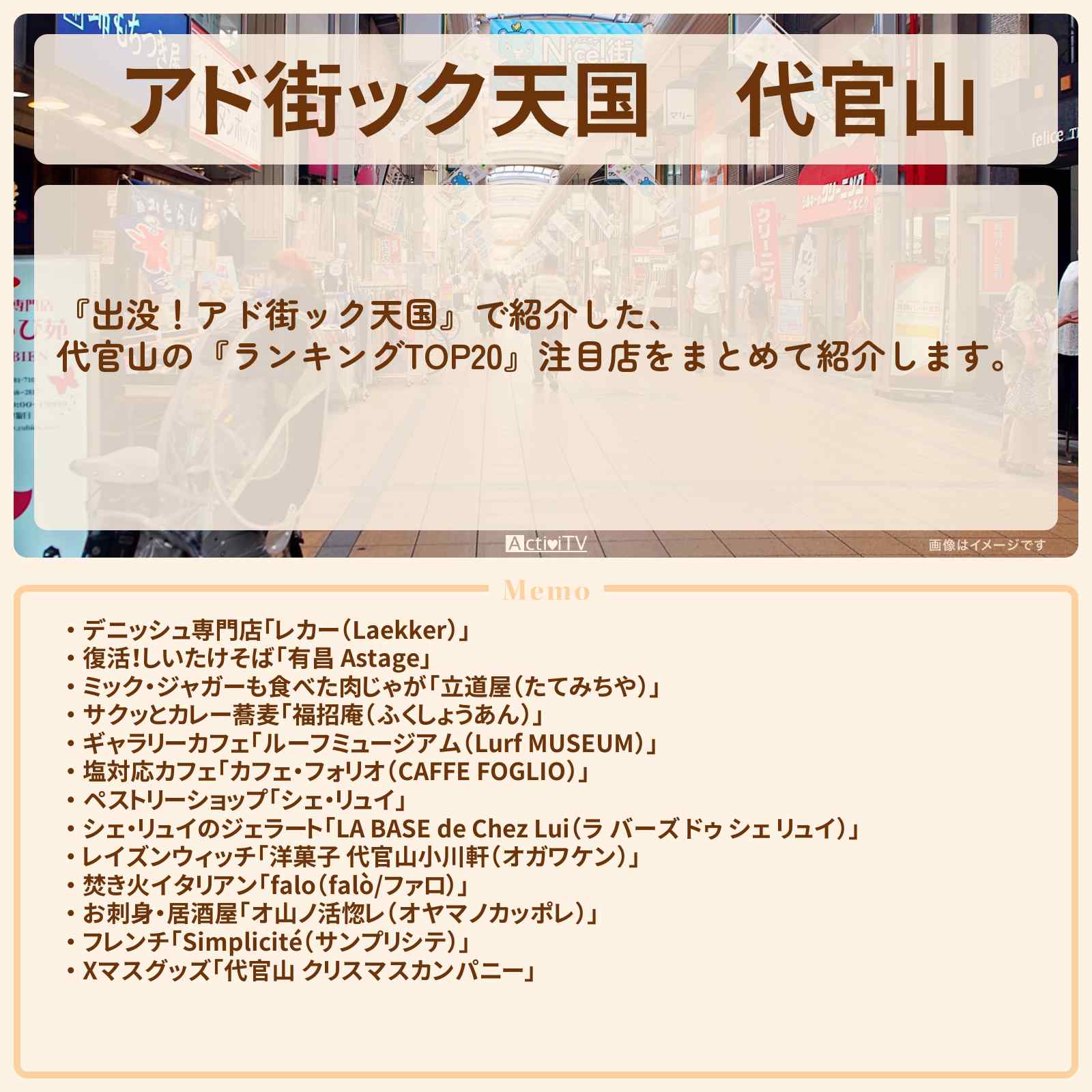 代官山はアド街の放送1回目で紹介した思い出の地でもあります。