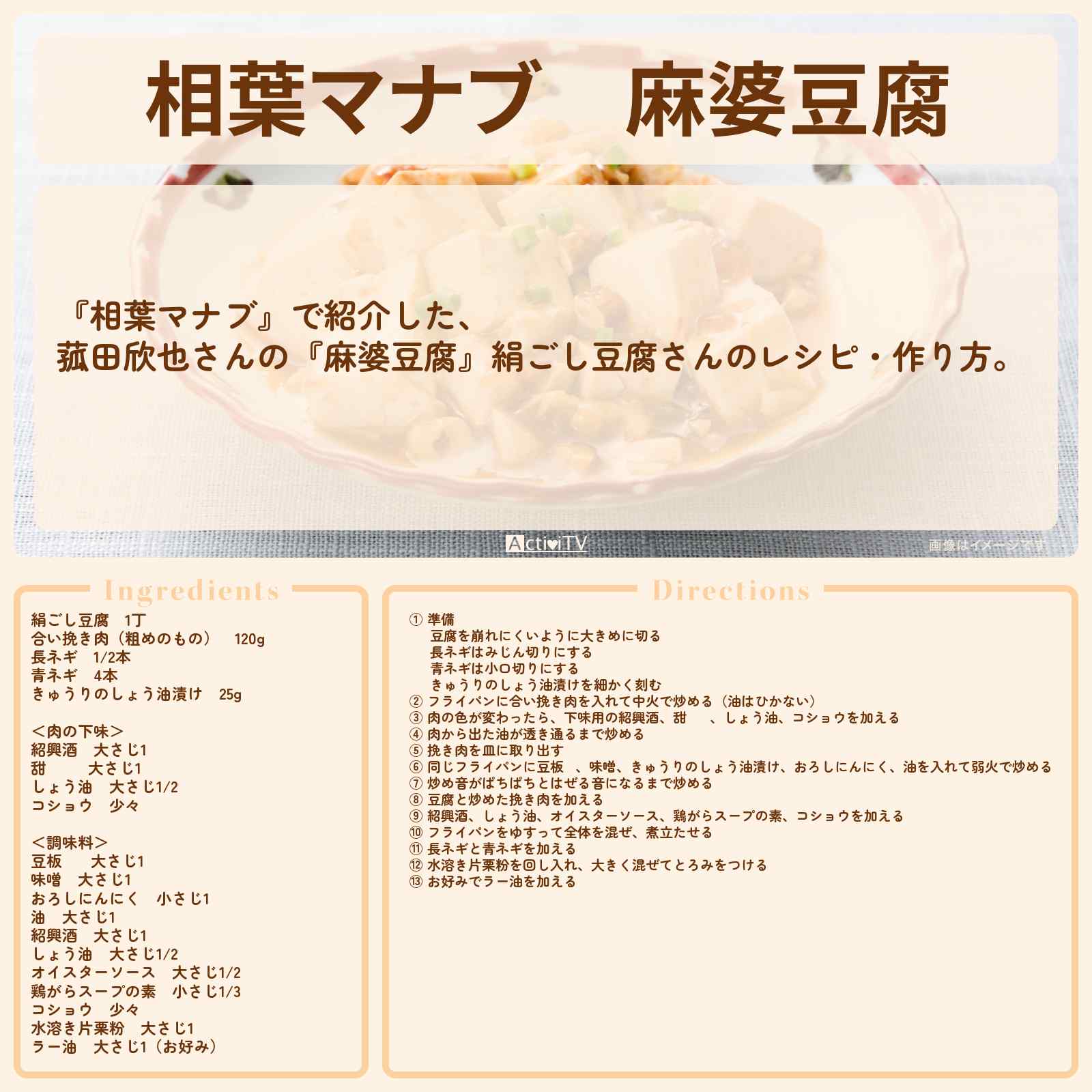 放送の【相葉マナブ】で紹介した、菰田欣也さんの『麻婆豆腐』絹ごし豆腐さんのレシピ・作り方。