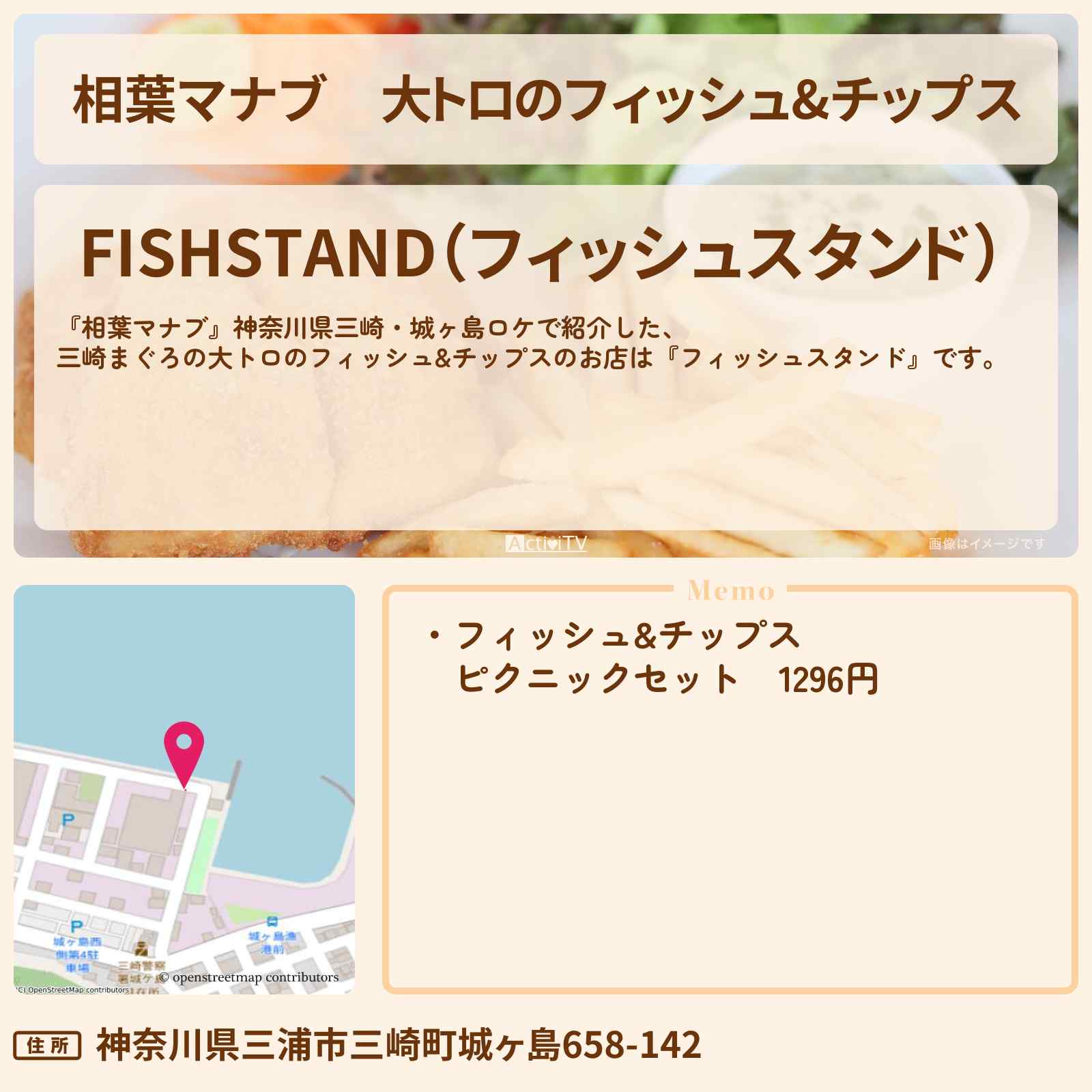 | 住所 | 神奈川県三浦市三崎町城ヶ島658-142 |