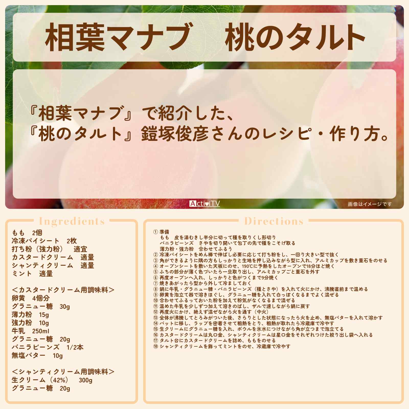 放送の【相葉マナブ】で紹介した、『桃のタルト』鎧塚俊彦さんのレシピ・作り方。