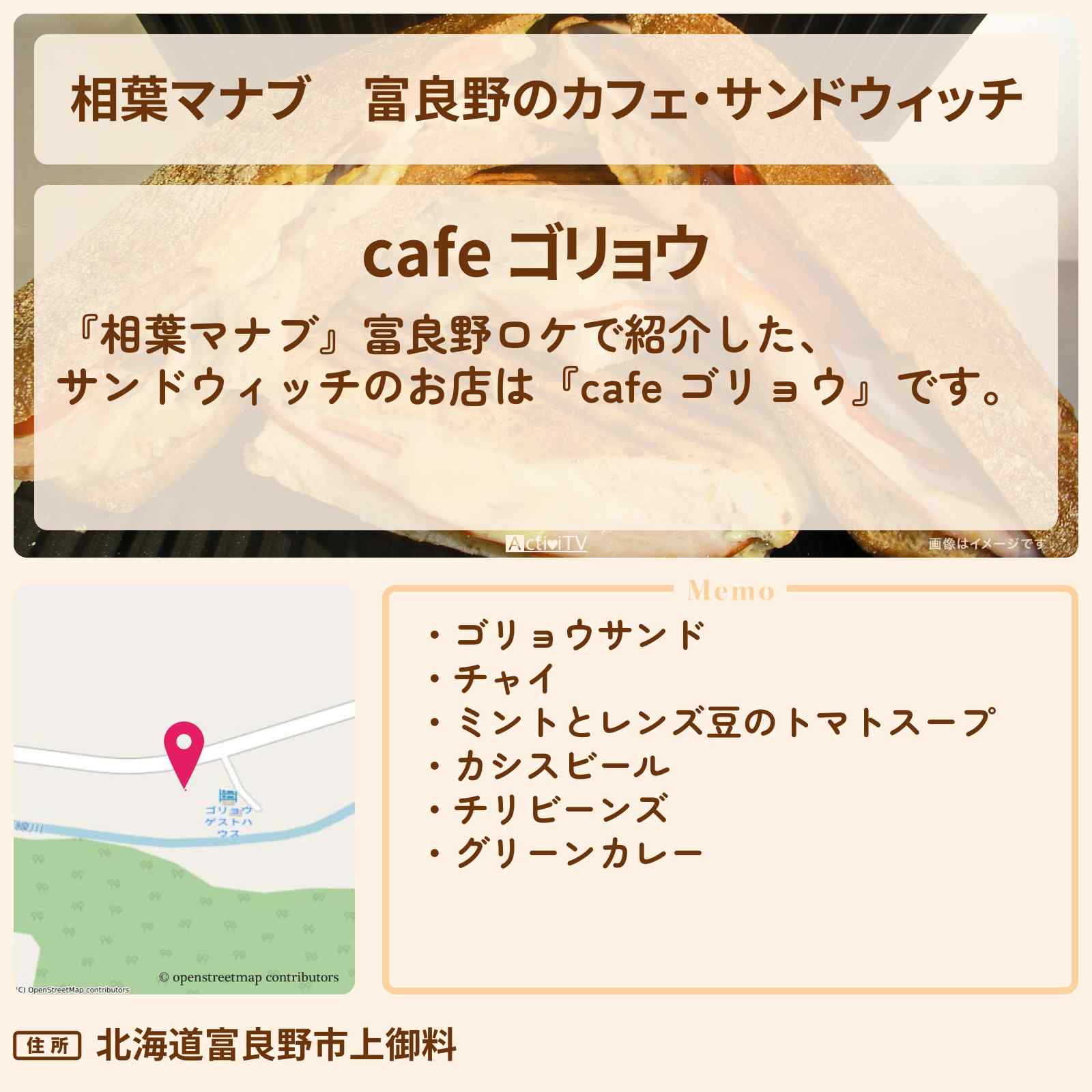 富良野のカフェ「cafe ゴリョウ」