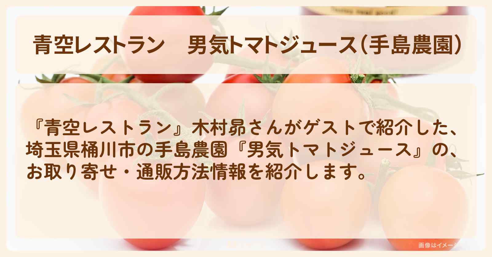 手島農園の代表的な商品である男気トマトジュースは、無塩・無添加で、まるで完熟トマトをそのまま飲んでいるかのような濃厚な味わいが特徴です。
