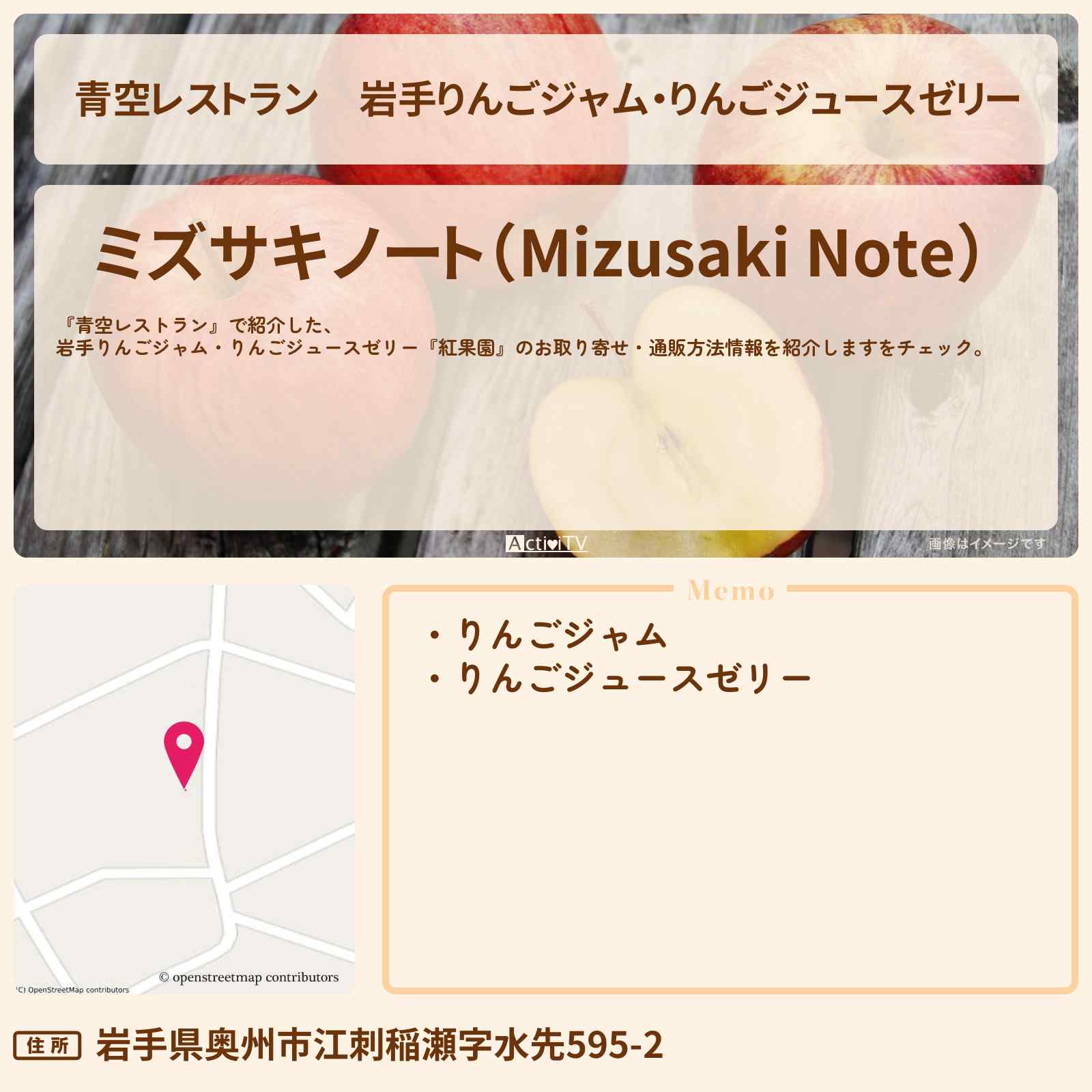 岩手りんごジャム・りんごジュースゼリー 六原駅「ミズサキノート(Mizusaki Note)」