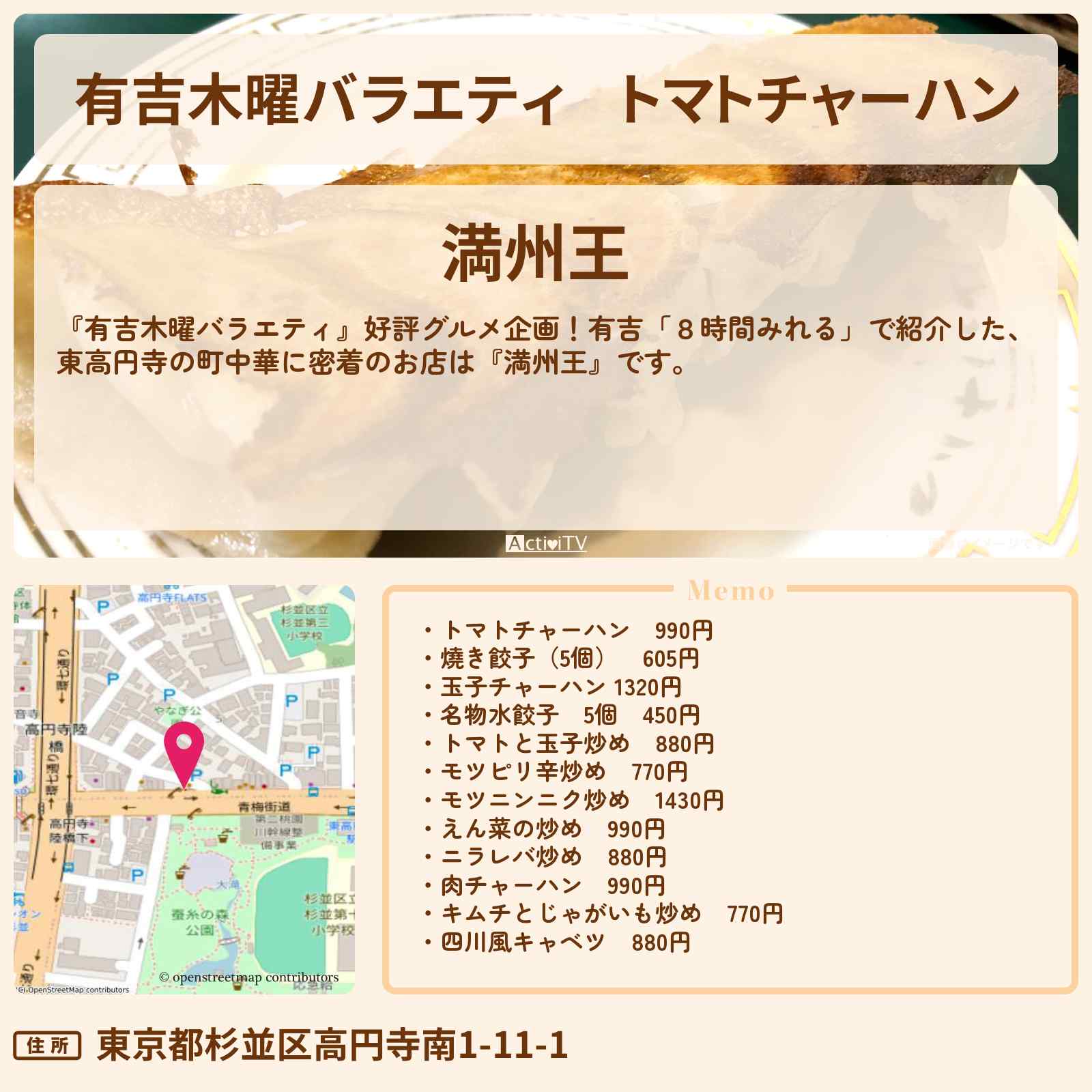 こちらは『満州王(高円寺/中華料理)』のお店ページです。実名でのオススメが14件集まっています。Rettyで食が好きなグルメな人たちからお店を探そう!…