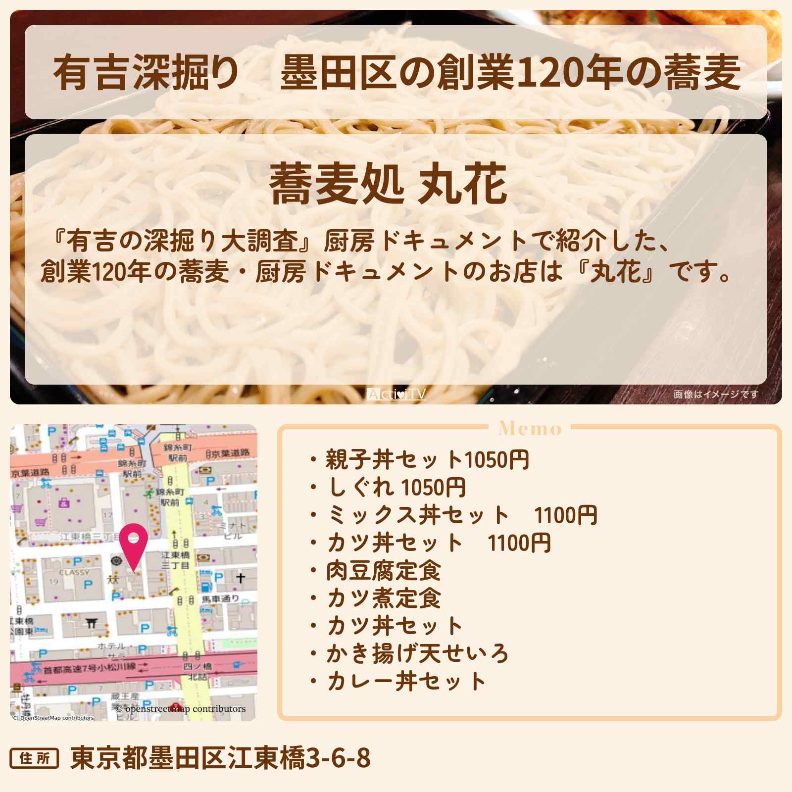 【有吉深掘り】墨田区の創業120年の蕎麦『丸花』厨房ドキュメント・錦糸町のお店の場所