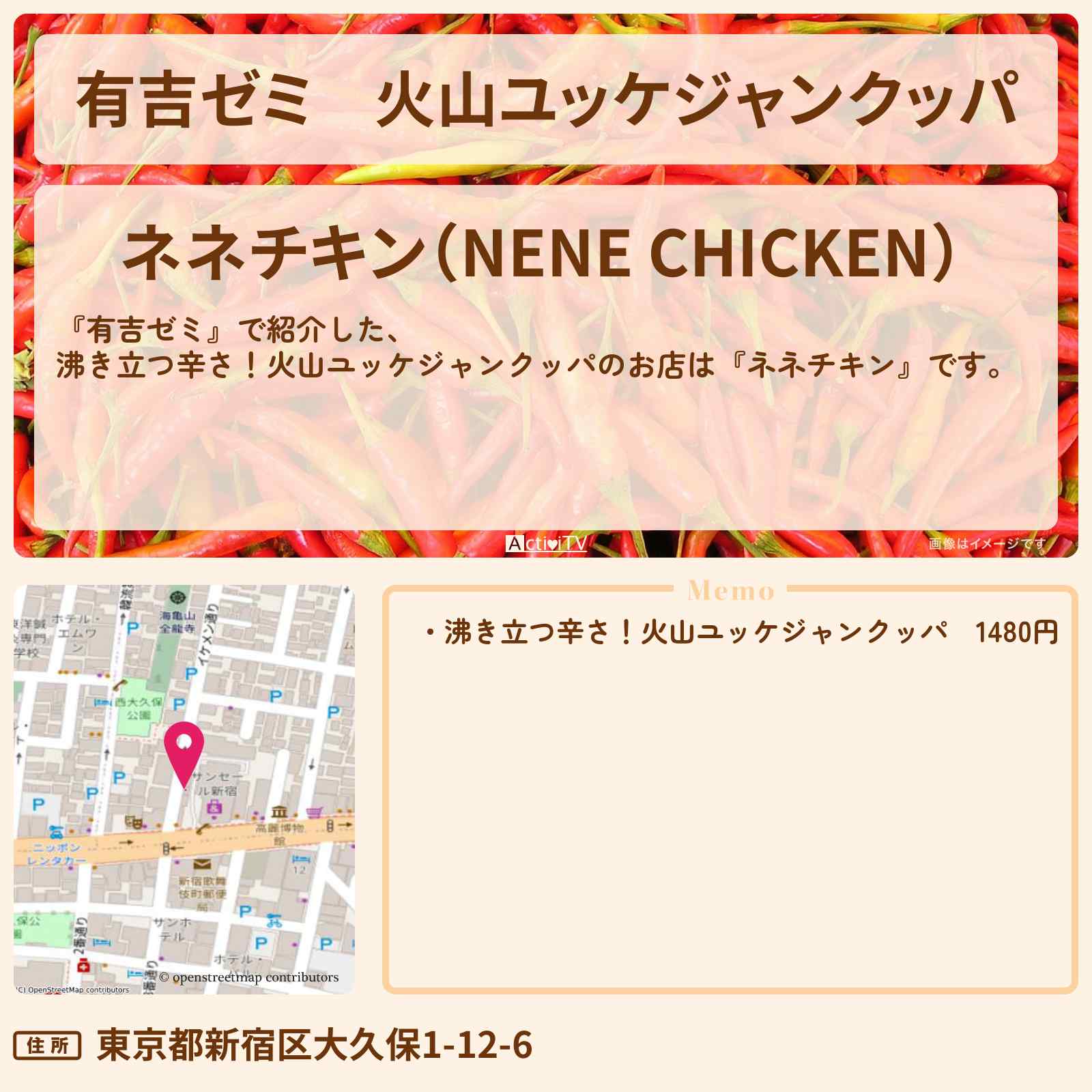 火山ユッケジャンクッパ 新大久保駅「ネネチキン(NENE CHICKEN)」
