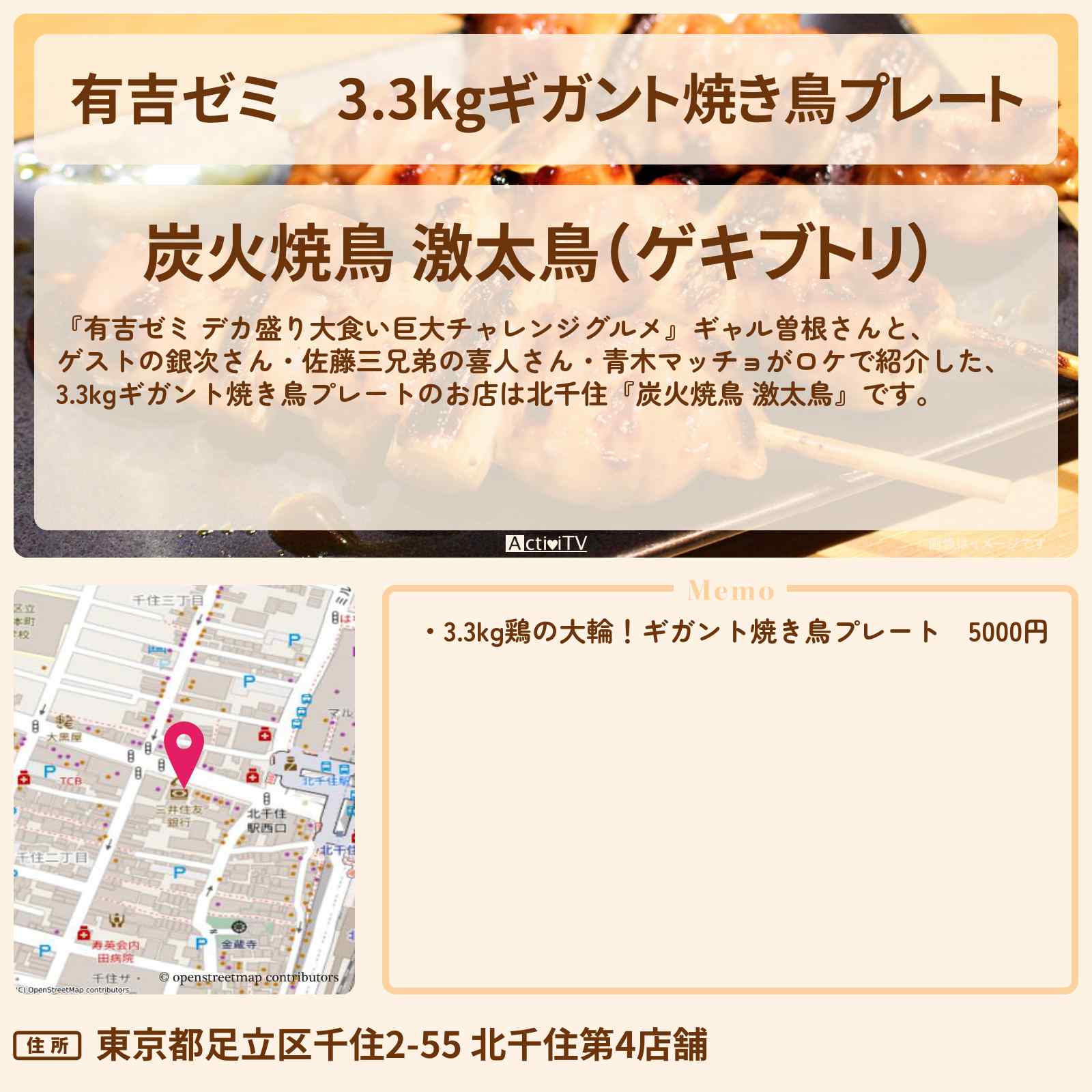 3.3kgギガント焼き鳥プレート 北千住駅「炭火焼鳥 激太鳥(ゲキブトリ)」