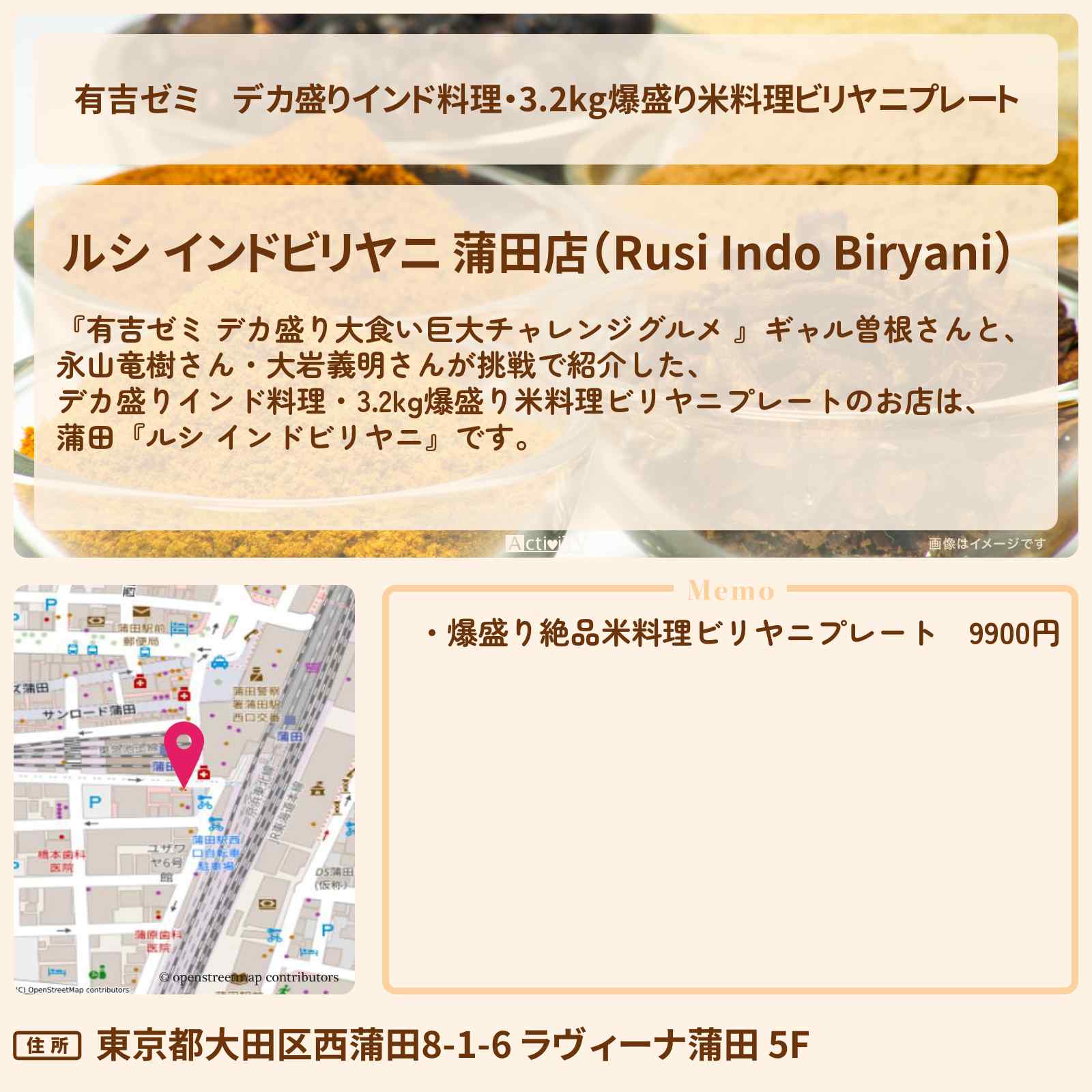 蒲田駅「ルシ インドビリヤニ 蒲田店(Rusi Indo Biryani)」
