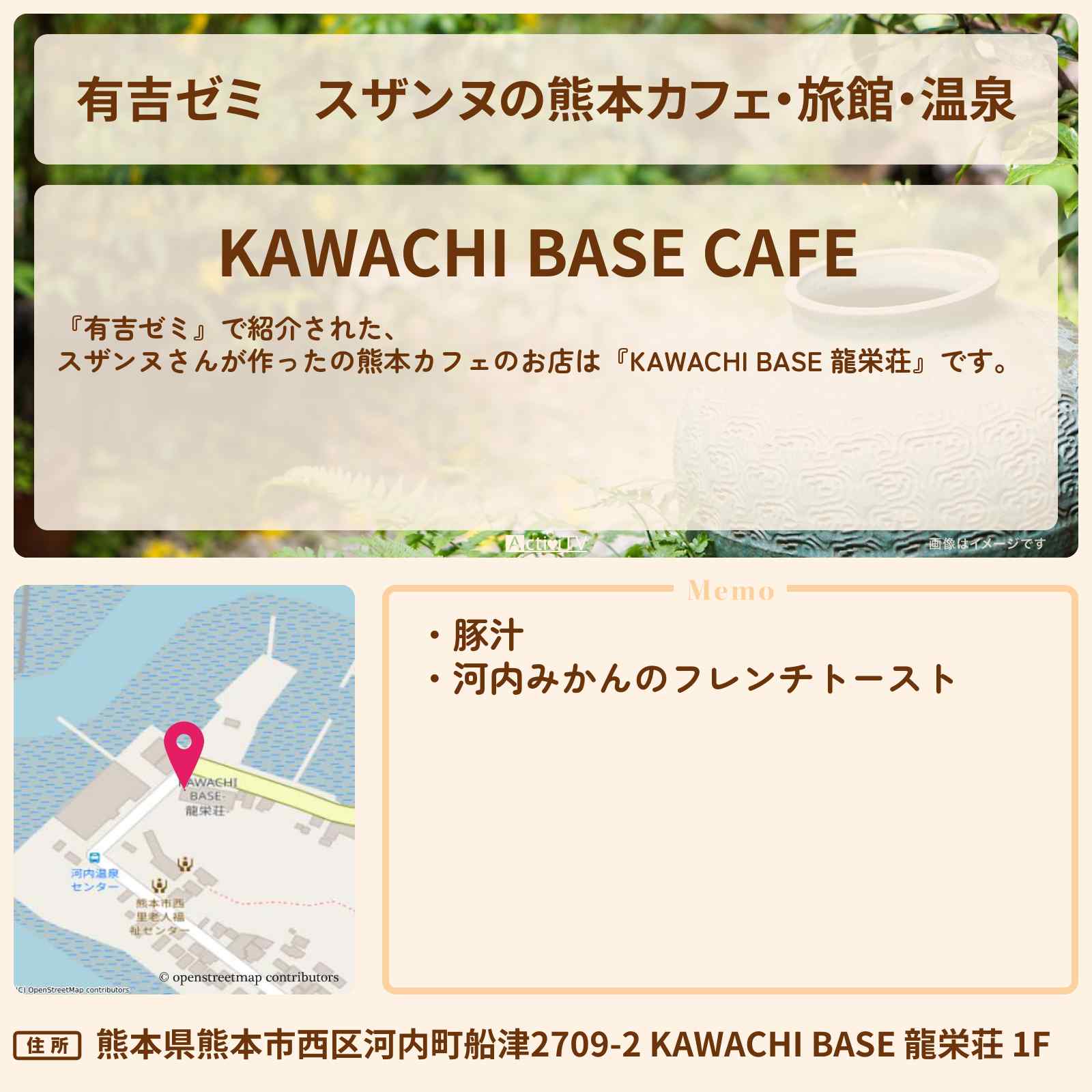| 住所 | 熊本県熊本市西区河内町船津2709-2 KAWACHI BASE 龍栄荘 1F |