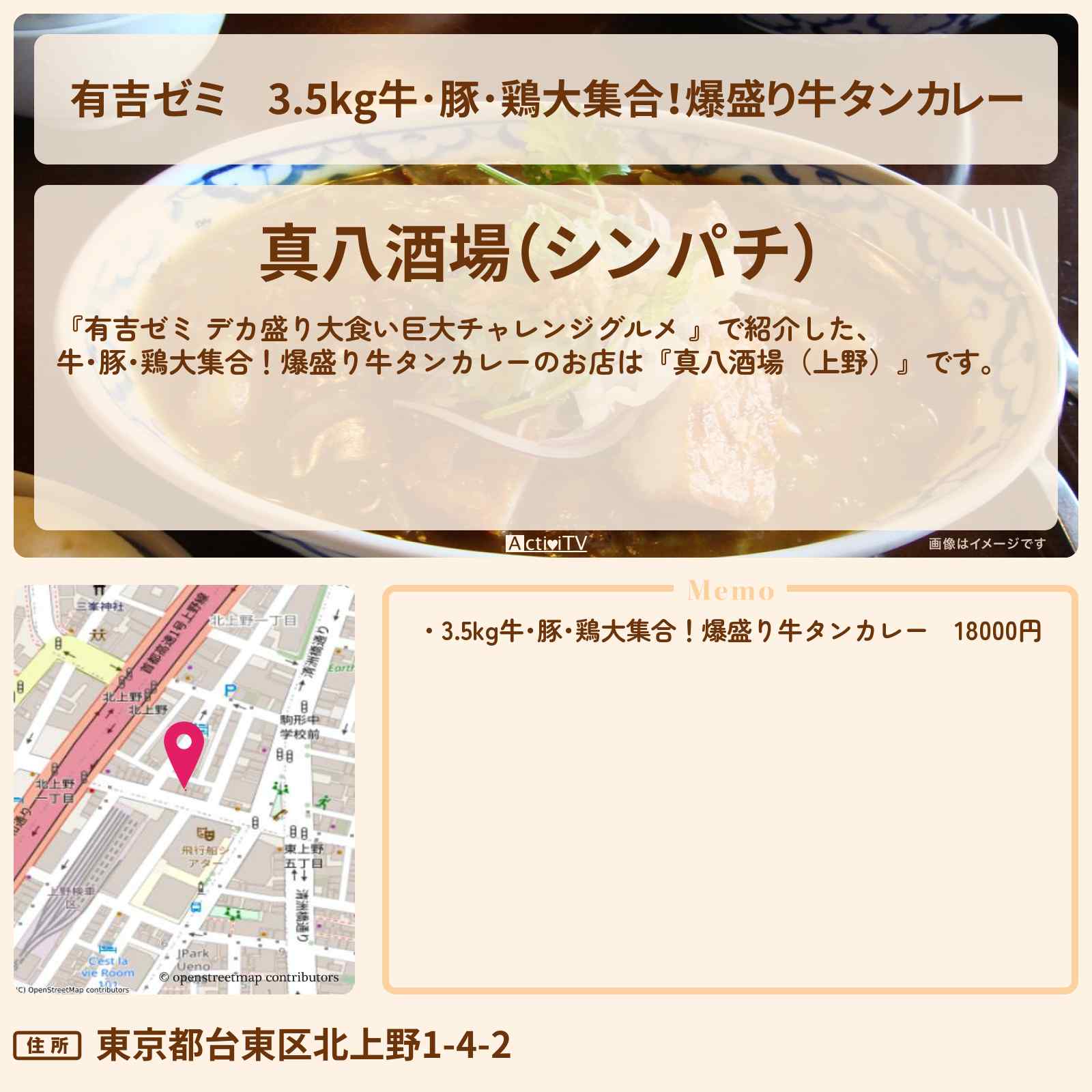3.5kg牛・豚・鶏大集合!爆盛り牛タンカレー 上野駅「真八酒場(シンパチ)」