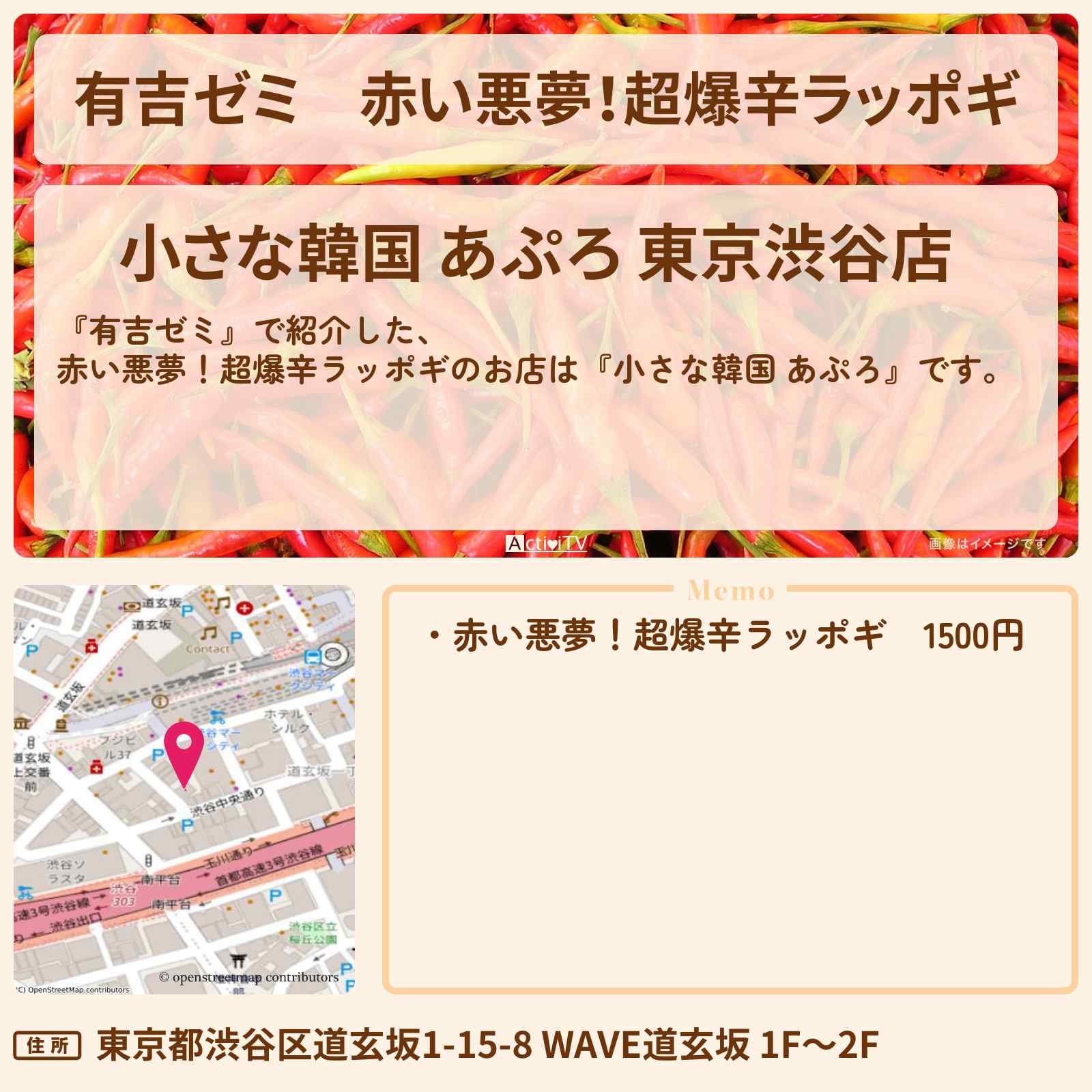 赤い悪夢!超爆辛ラッポギ 神泉駅「小さな韓国 あぷろ 東京渋谷店」