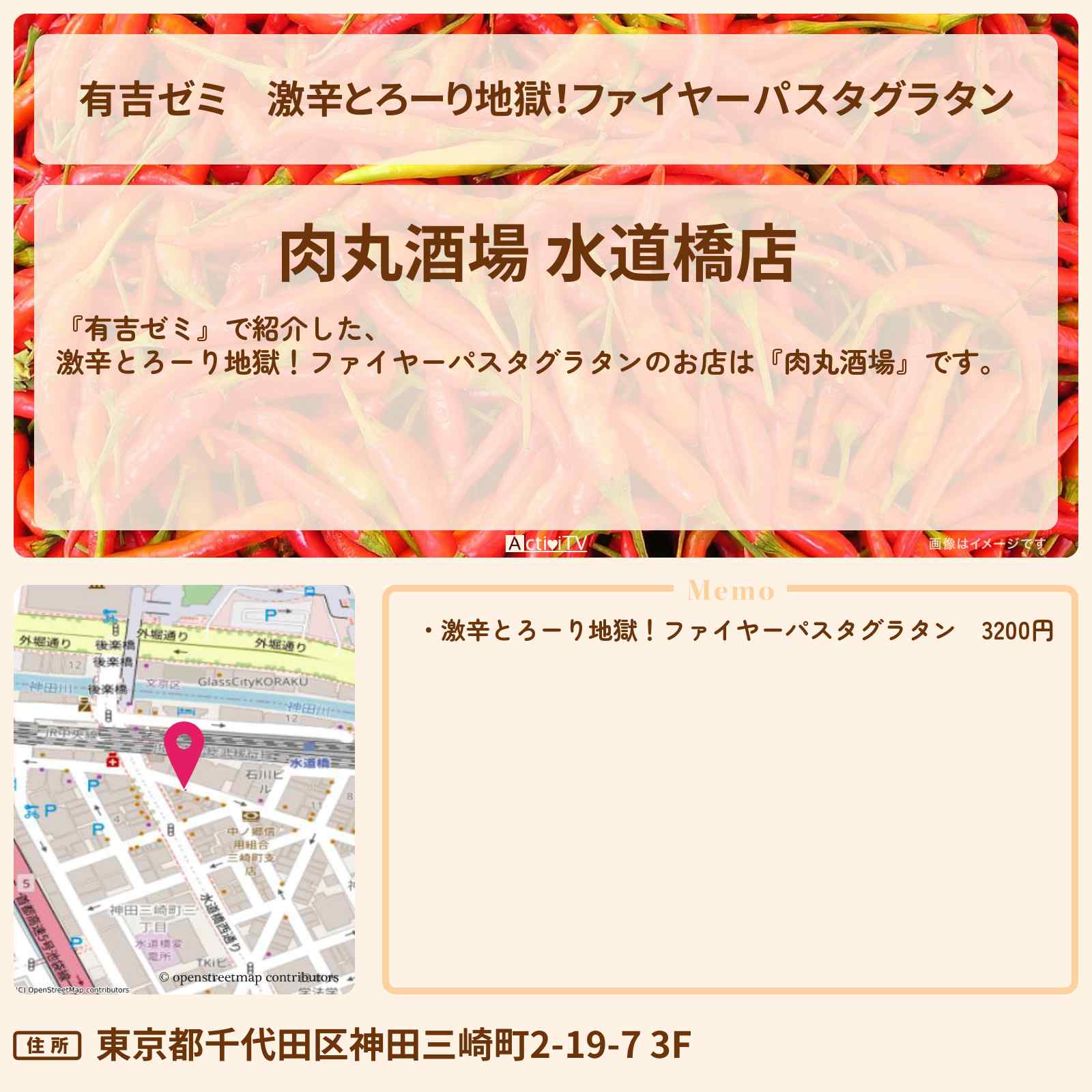 激辛とろーり地獄!ファイヤーパスタグラタン「肉丸酒場 水道橋店」