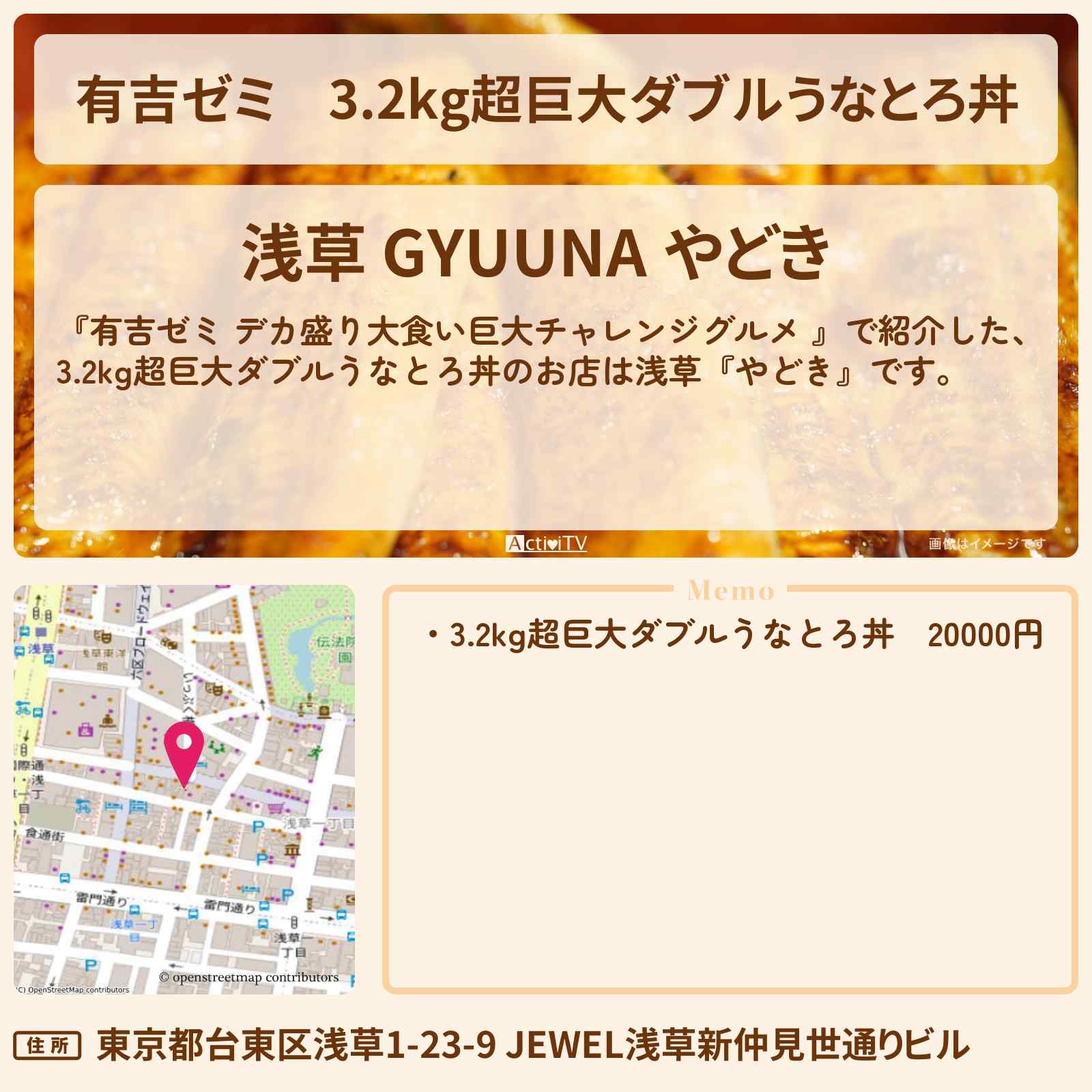 3.2kg超巨大ダブルうなとろ丼 浅草駅「浅草 GYUUNA やどき」