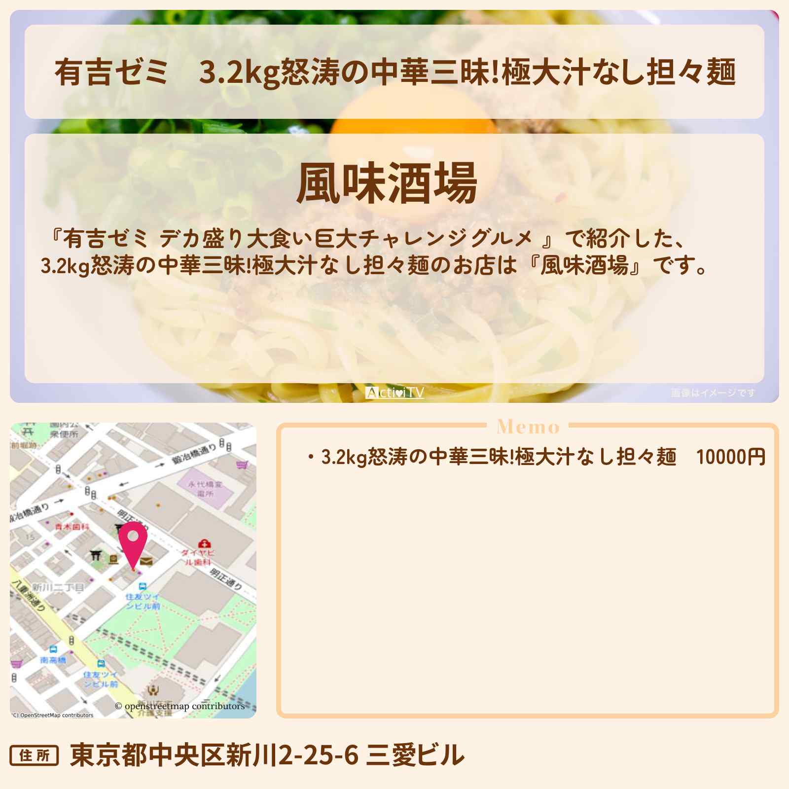 怒涛の中華三昧!極大汁なし担々麺 八丁堀駅「風味酒場」