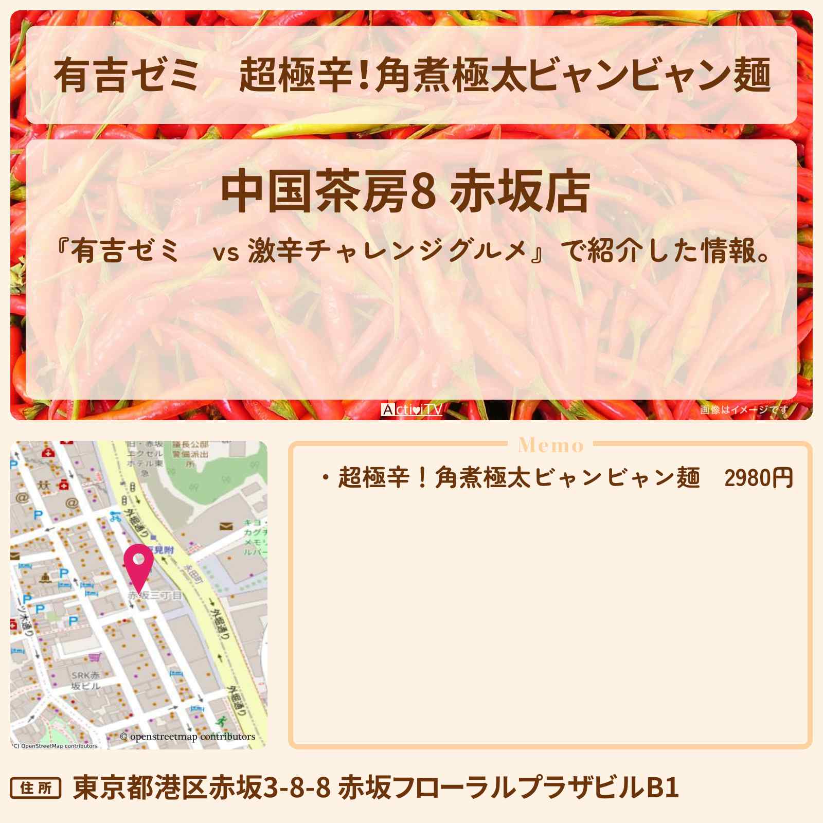 超極辛!角煮極太ビャンビャン麺 赤坂見附駅「中国茶房8 赤坂店」