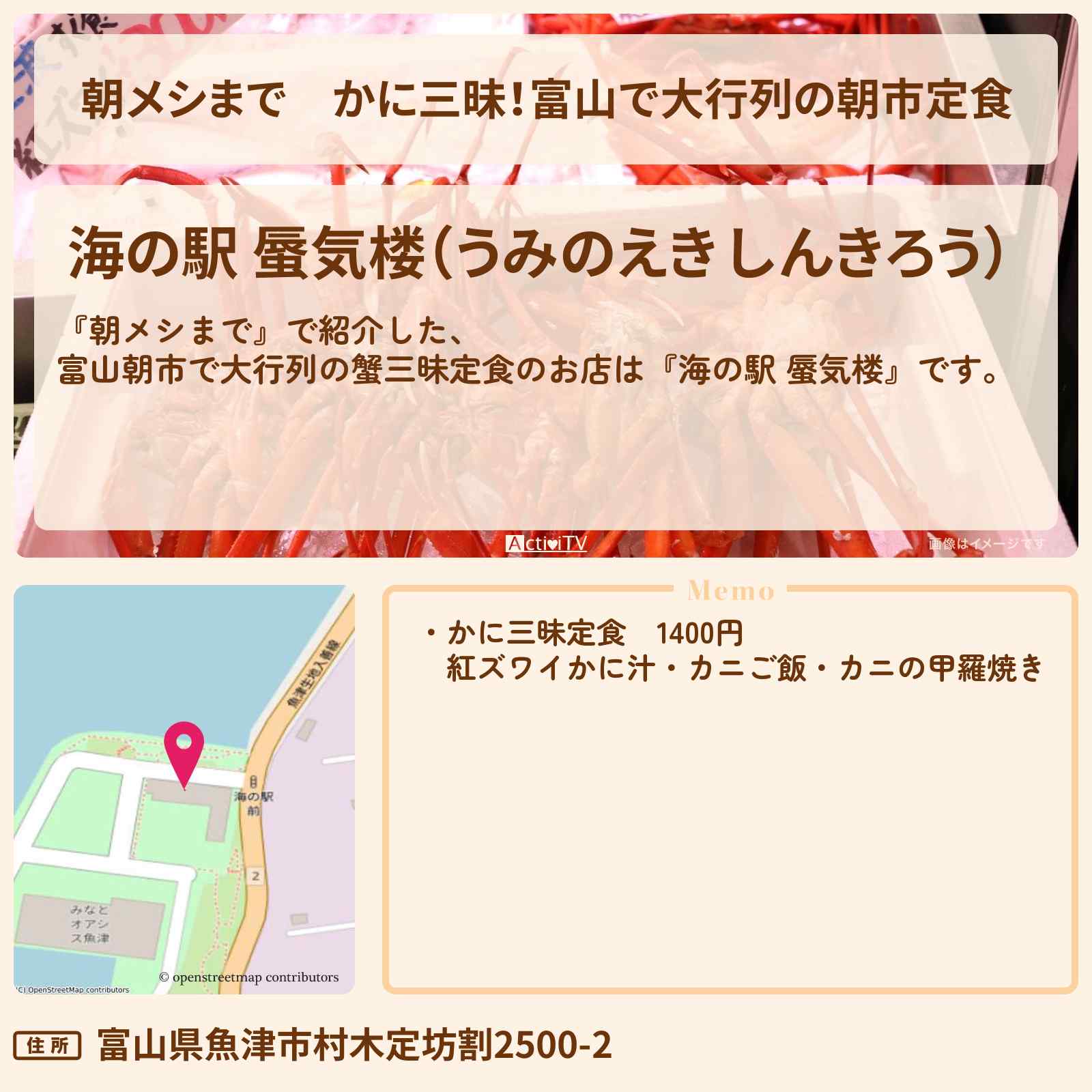 朝市定食 新魚津駅「海の駅 蜃気楼(うみのえき しんきろう)」