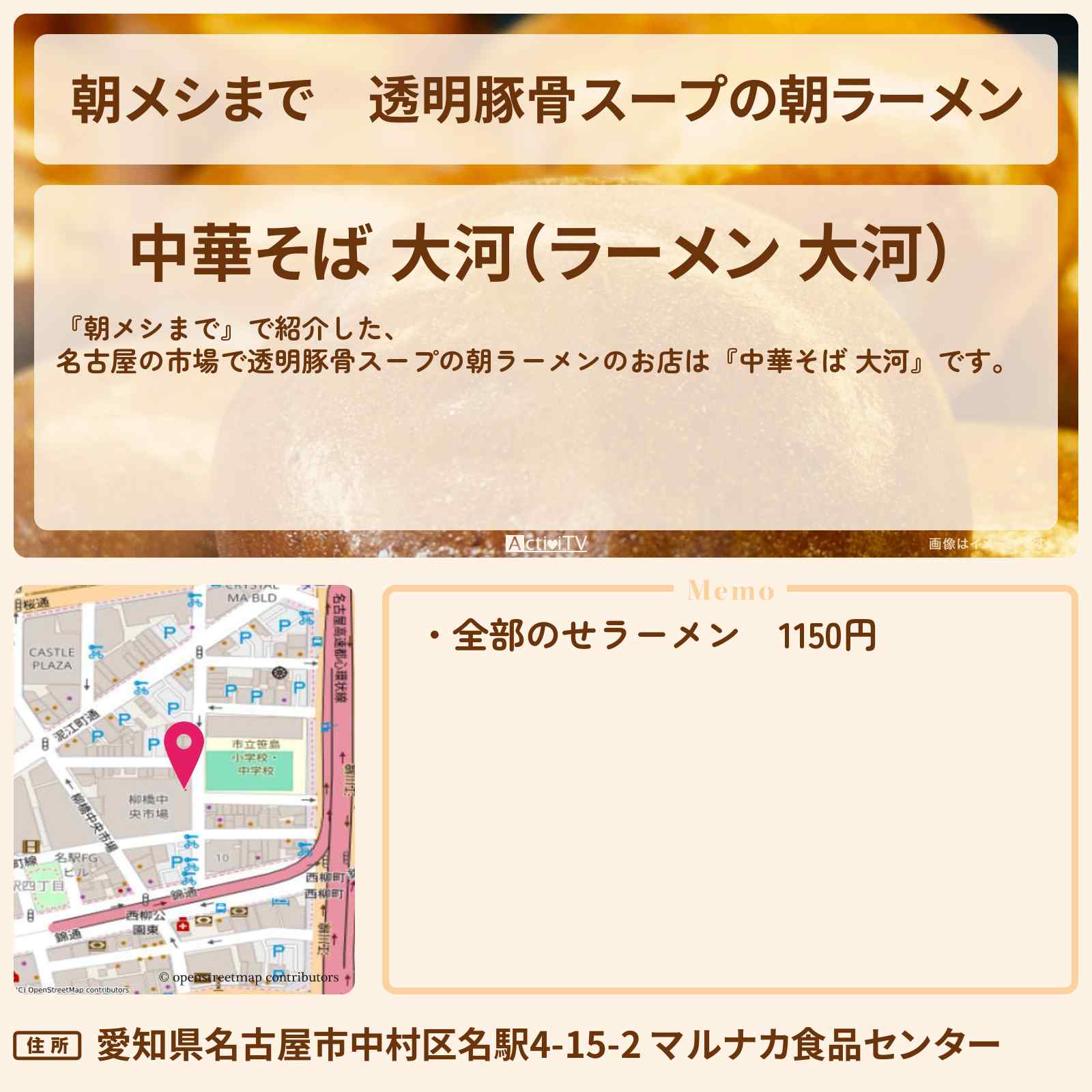 マルナカ飲食店情報|ラーメン 大河|名古屋駅前柳橋中央市場 マルナカ食品センター|名古屋の食を見守り続けて100年