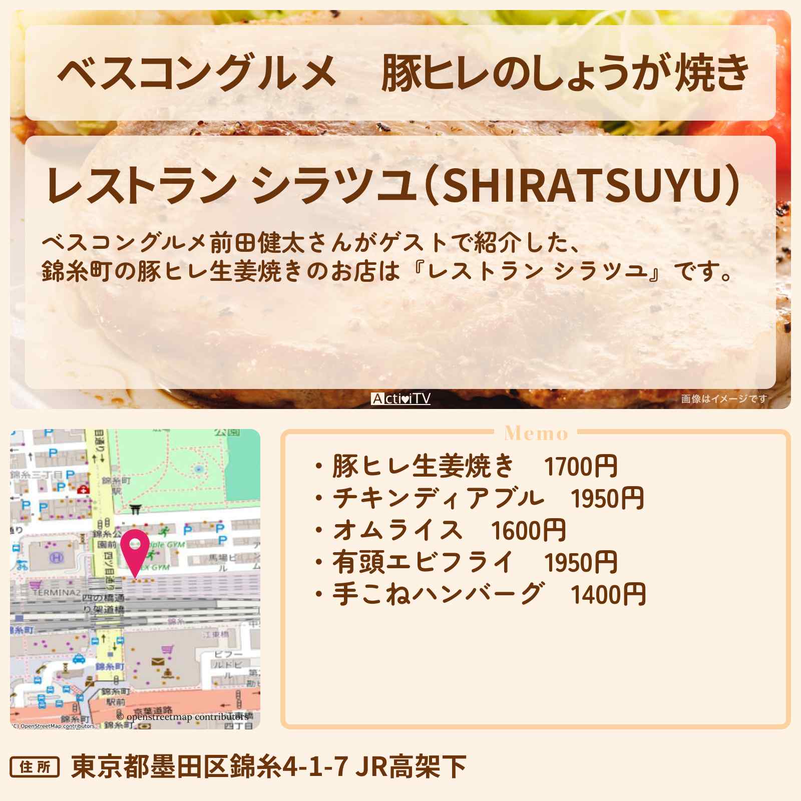 下町洋食の豚ヒレ生姜焼き 錦糸町駅「レストラン シラツユ(SHIRATSUYU)」
