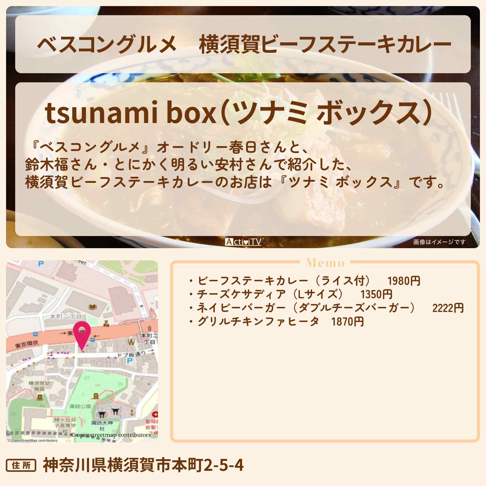 ビーフステーキカレー 汐入駅「tsunami box(ツナミ ボックス)」