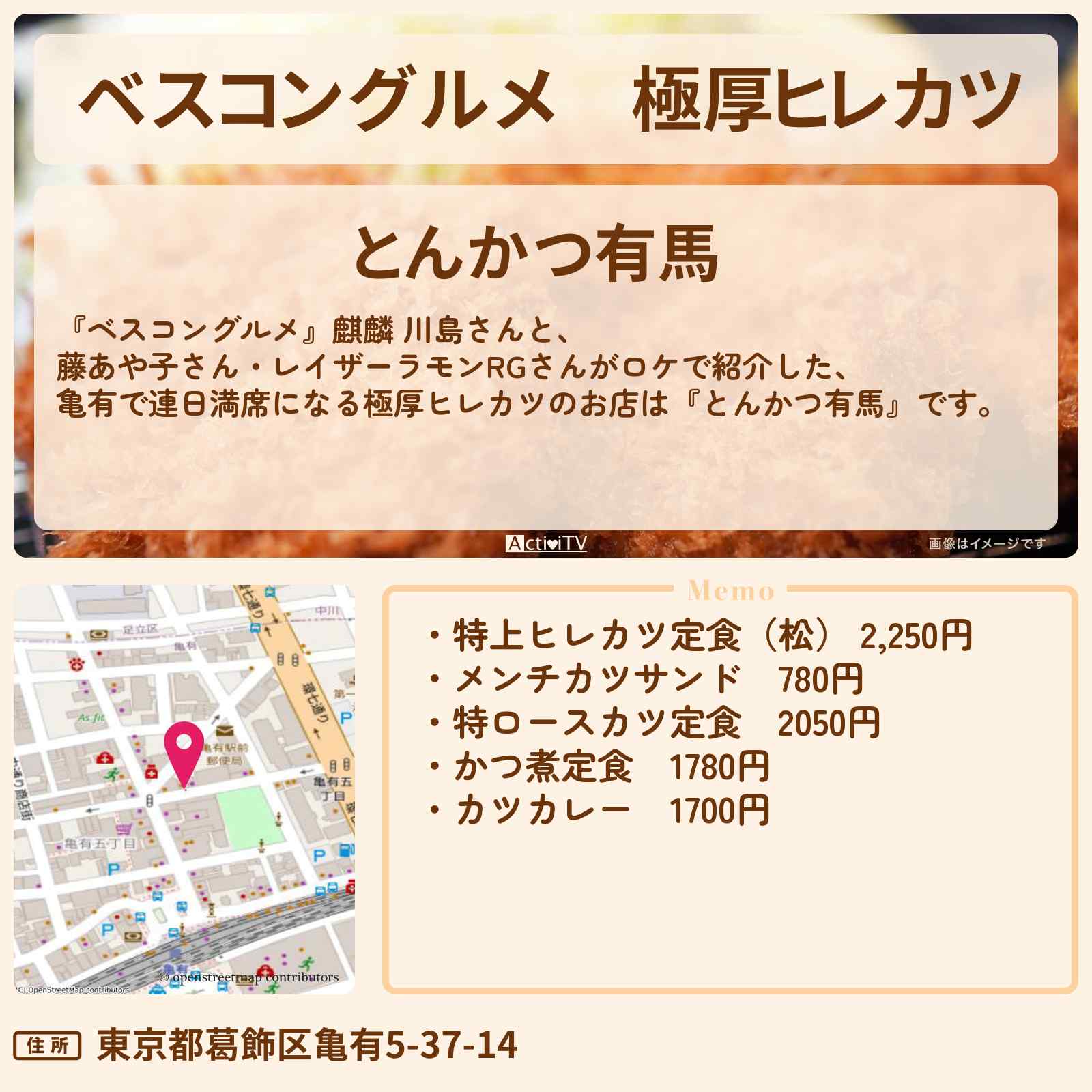 極厚ヒレカツ 亀有駅「とんかつ有馬」