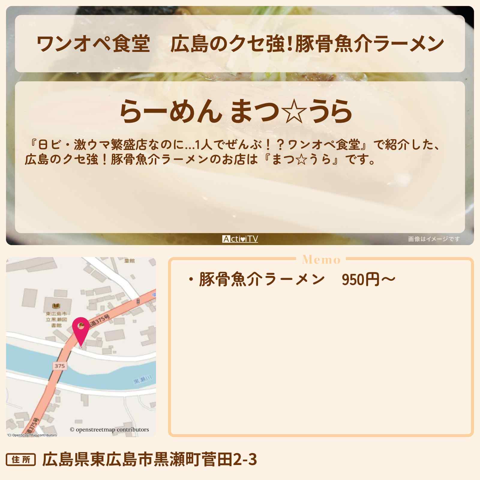広島のクセ強ラーメン「らーめん まつ☆うら」