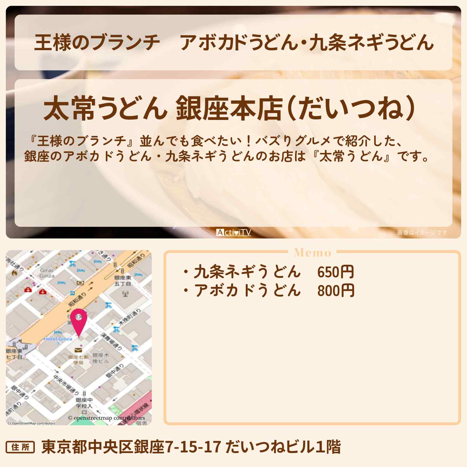 東銀座駅「太常うどん 銀座本店(だいつね)」