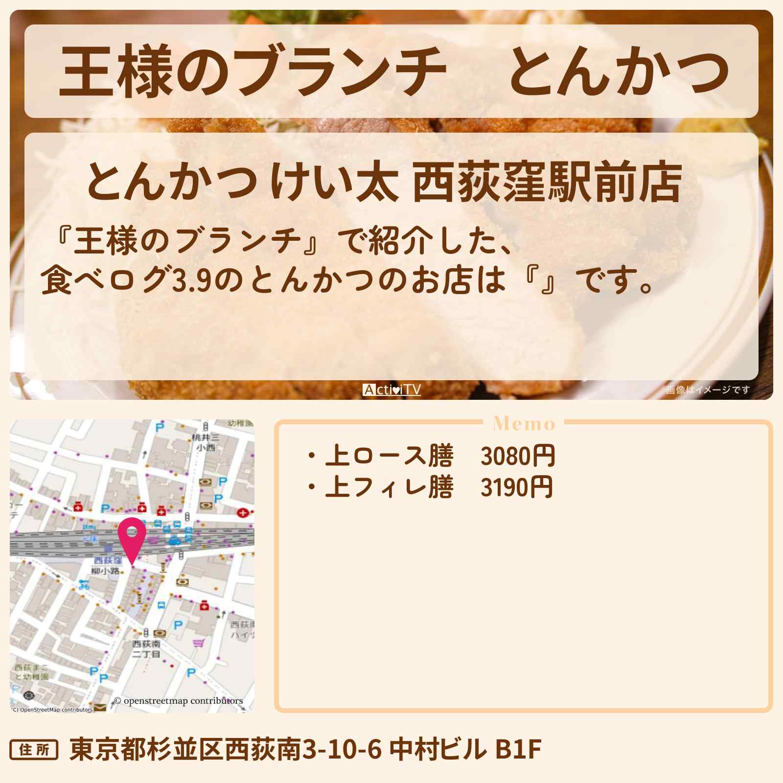 西荻窪駅「とんかつ けい太 西荻窪駅前店」