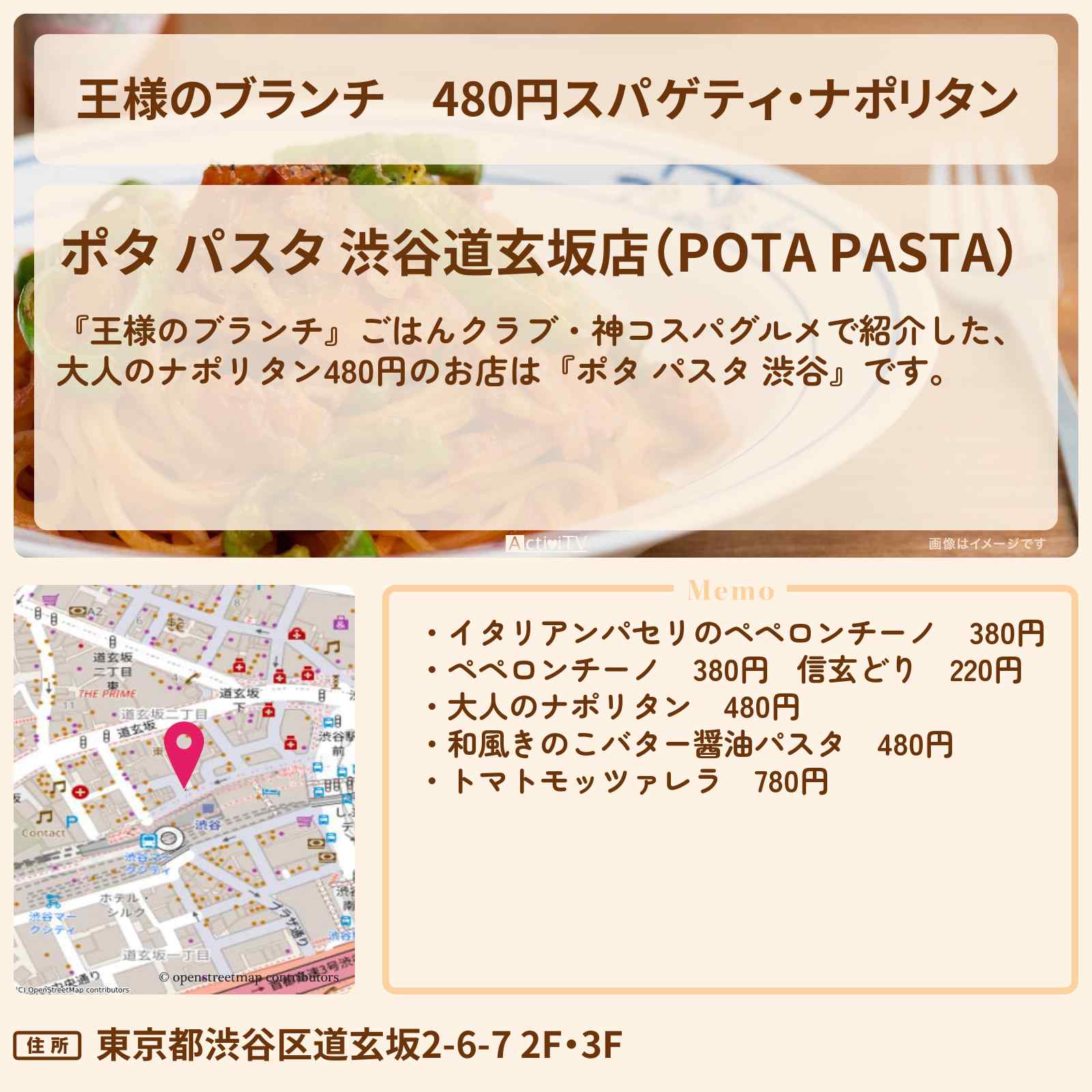 渋谷駅「ポタ パスタ 渋谷道玄坂店(POTA PASTA)」