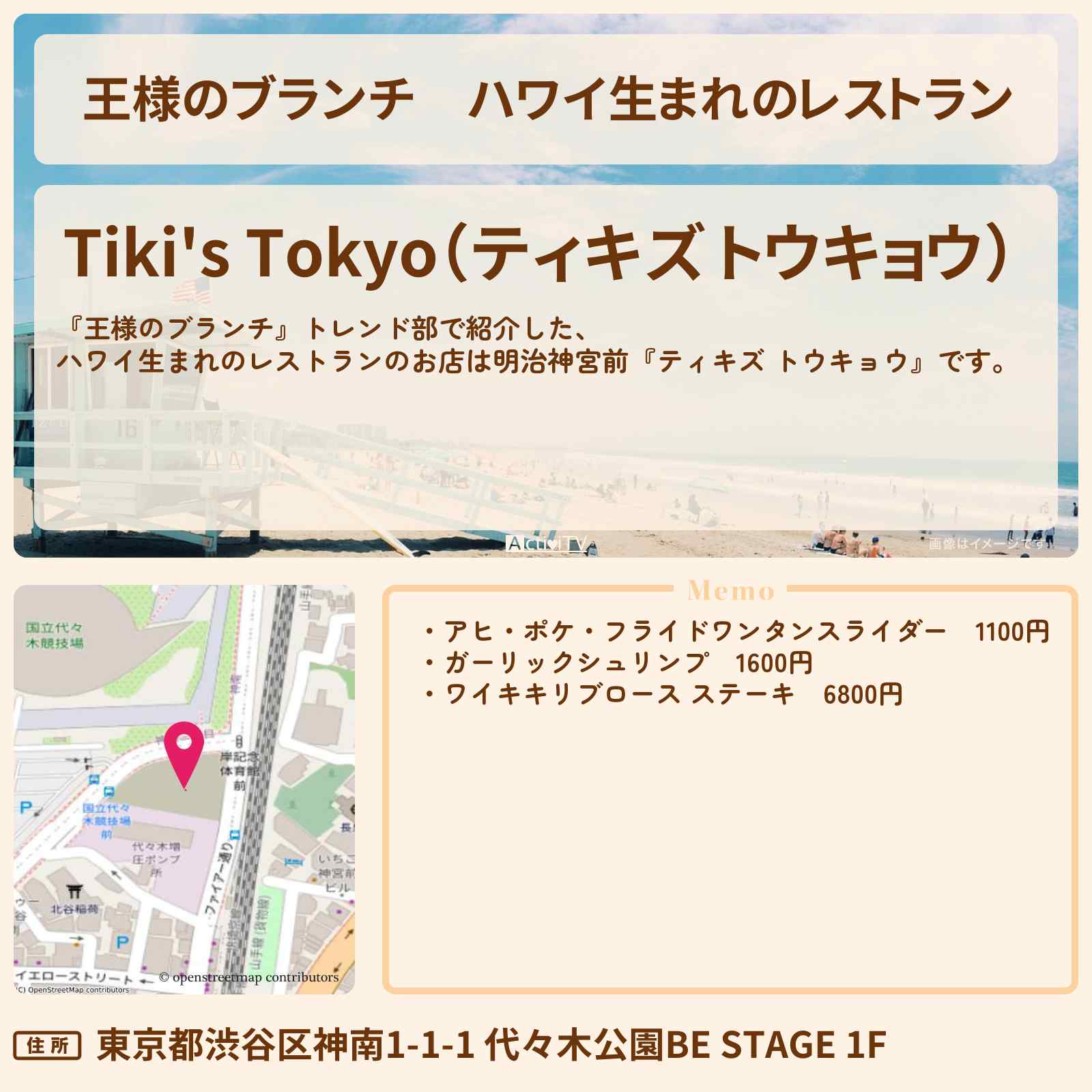 明治神宮前駅「Tiki’s Tokyo(ティキズ トウキョウ)」