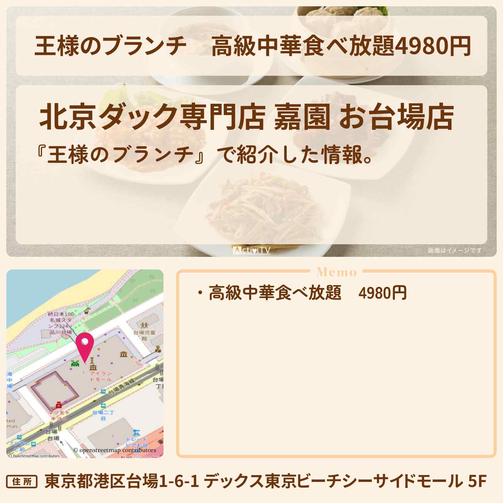 北京ダック専門店 嘉園 お台場店(台場/中華)<ネット予約可> | ホットペッパーグルメ
