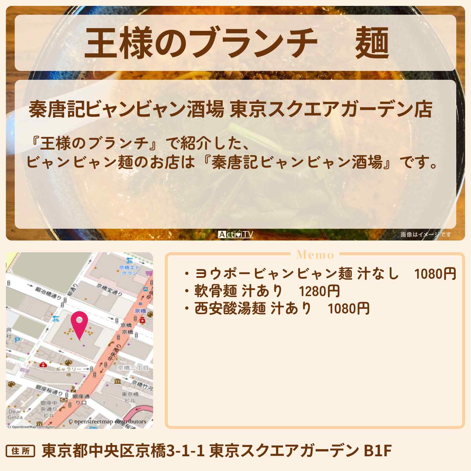 京橋駅「秦唐記ビャンビャン酒場 東京スクエアガーデン店」