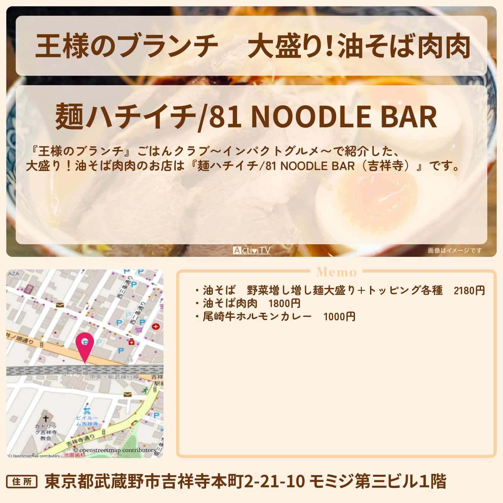 大盛り!油そば肉肉 吉祥寺駅「麺ハチイチ/81 NOODLE BAR」