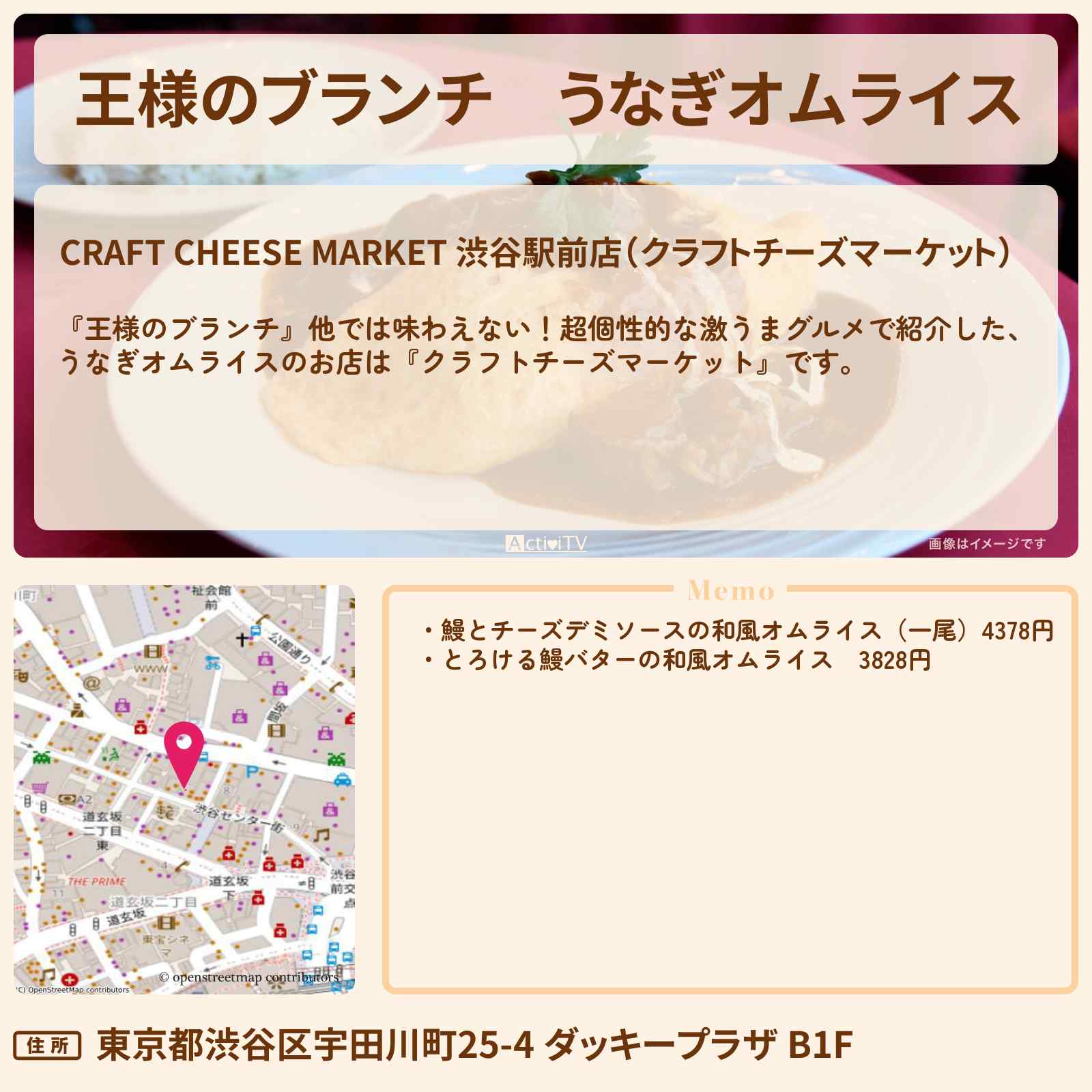 うなぎオムライス 渋谷駅「CRAFT CHEESE MARKET 渋谷駅前店(クラフトチーズマーケット)」