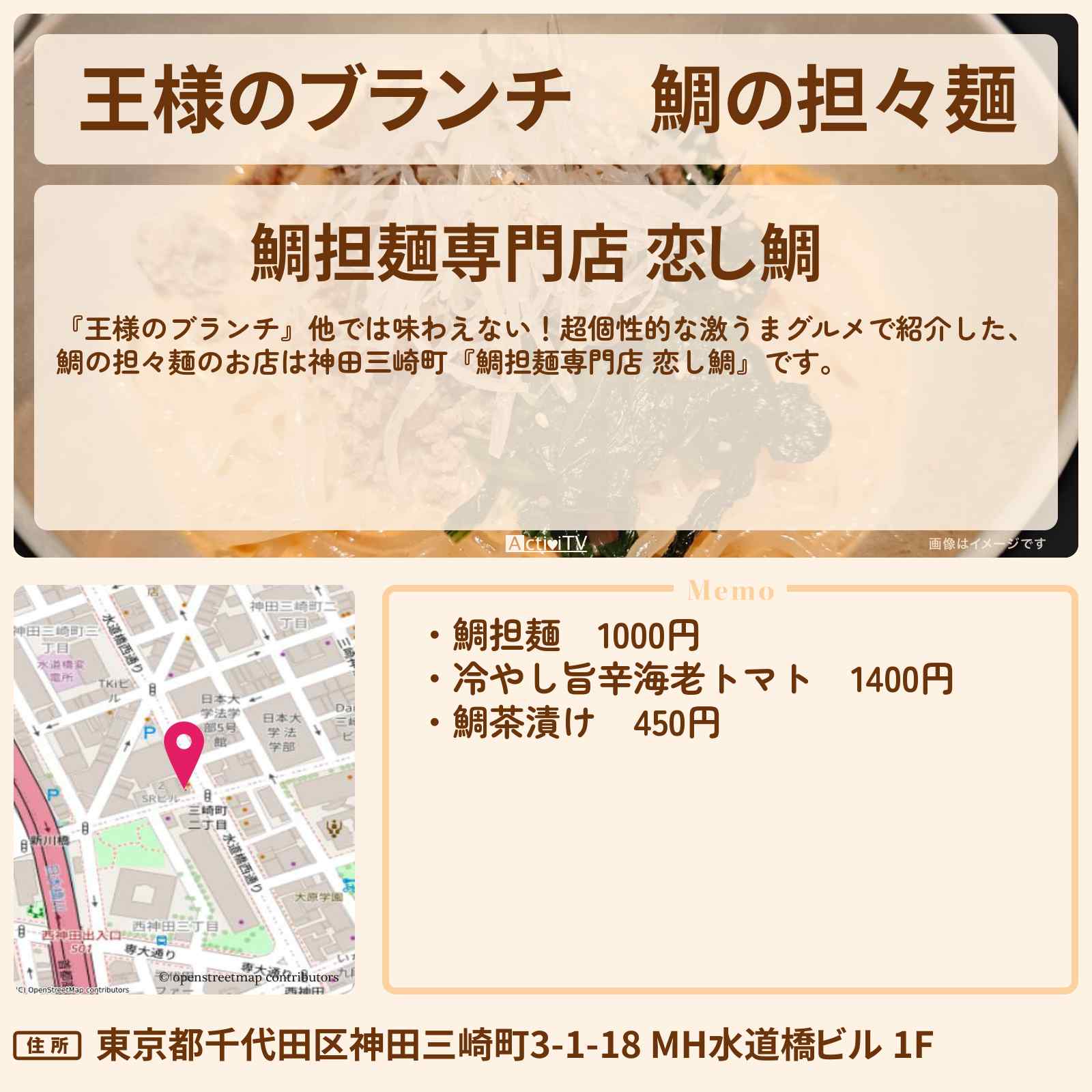 水道橋・ 神保町・九段下 | 鯛担麺専門店 恋し鯛 | フレンチラーメン