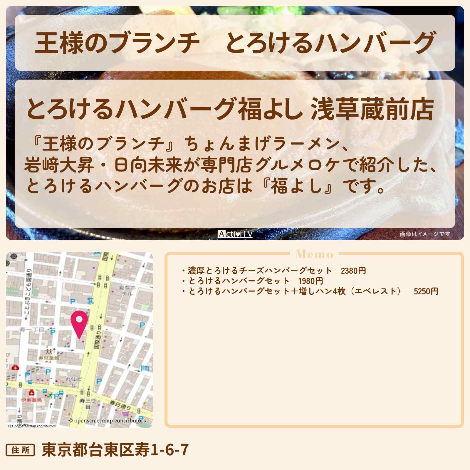 とろけるハンバーグ「とろけるハンバーグ福よし 浅草蔵前店」