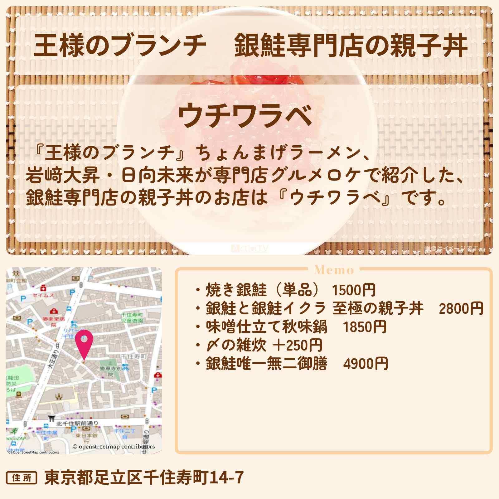 銀鮭専門店の親子丼 北千住駅「ウチワラベ」