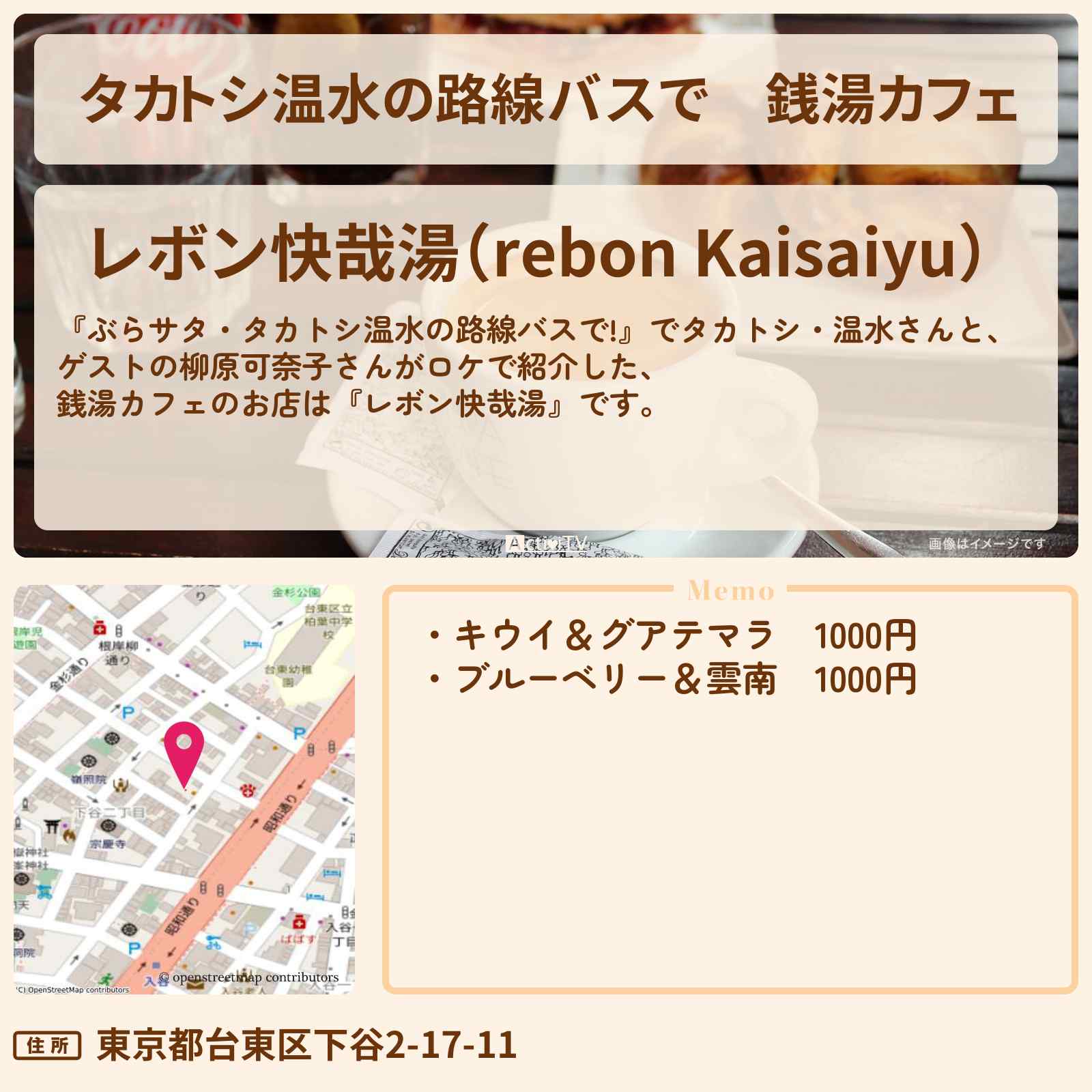 銭湯カフェ 入谷駅「レボン快哉湯(rebon Kaisaiyu)」