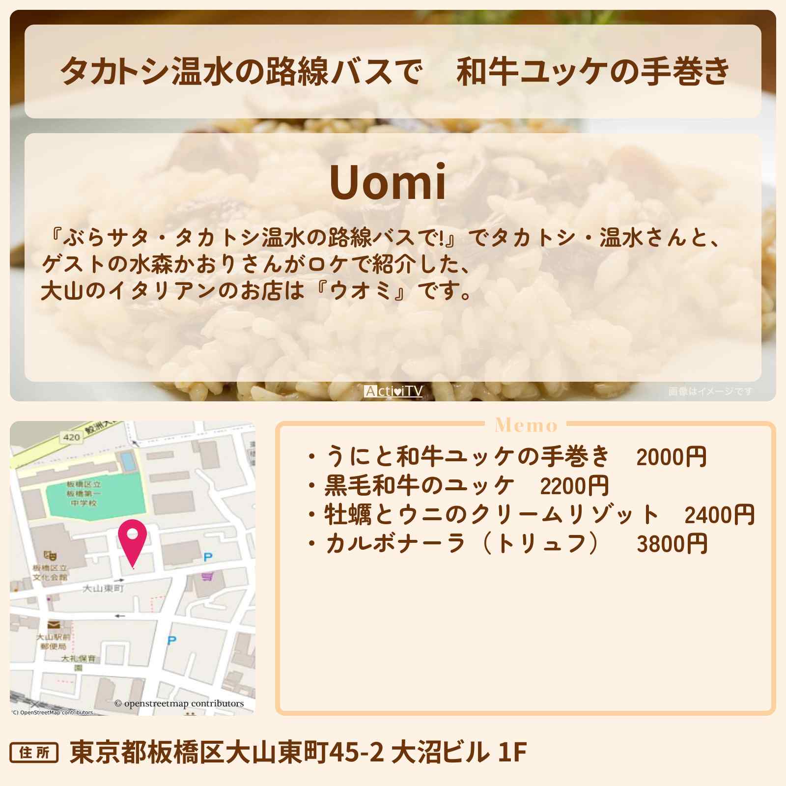 | 住所 | 東京都板橋区大山東町45-2 大沼ビル 1F |