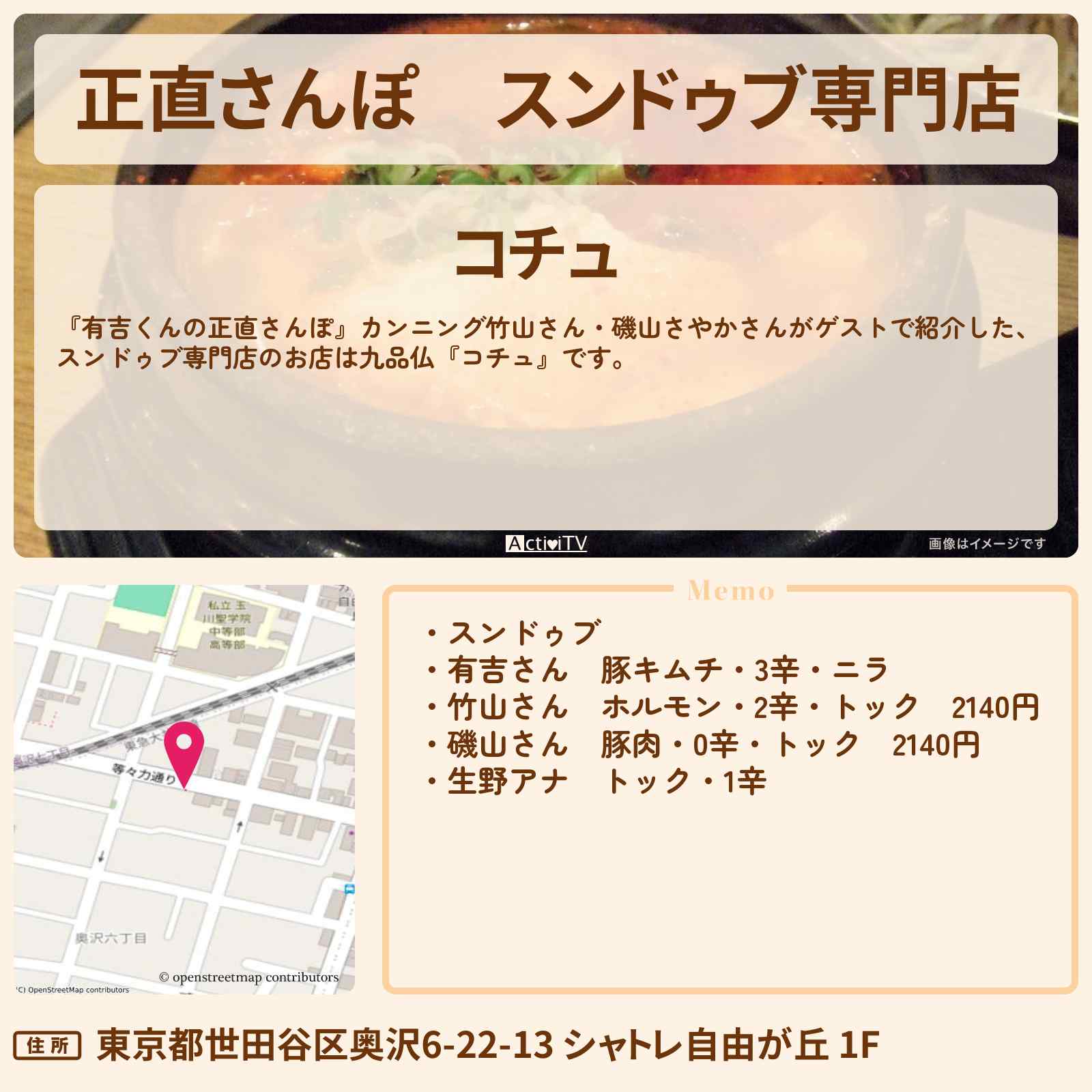 スンドゥブ専門店 九品仏「コチュ」