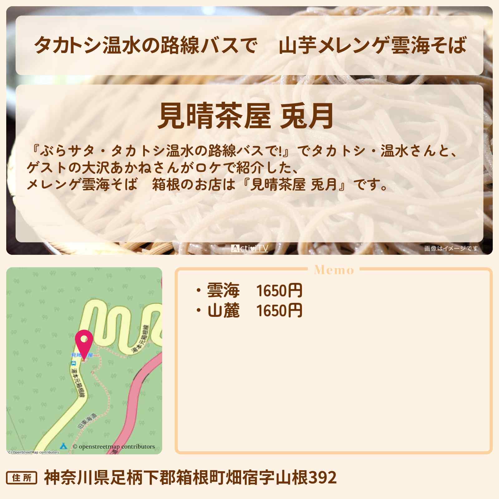 メレンゲ雲海そば 小涌谷駅「見晴茶屋 兎月」