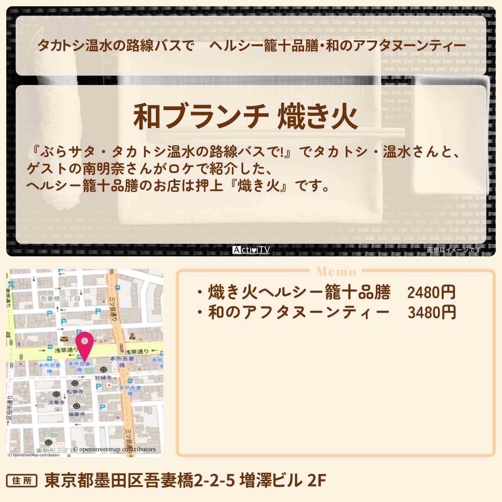 本所吾妻橋駅「和ブランチ 熾き火」
