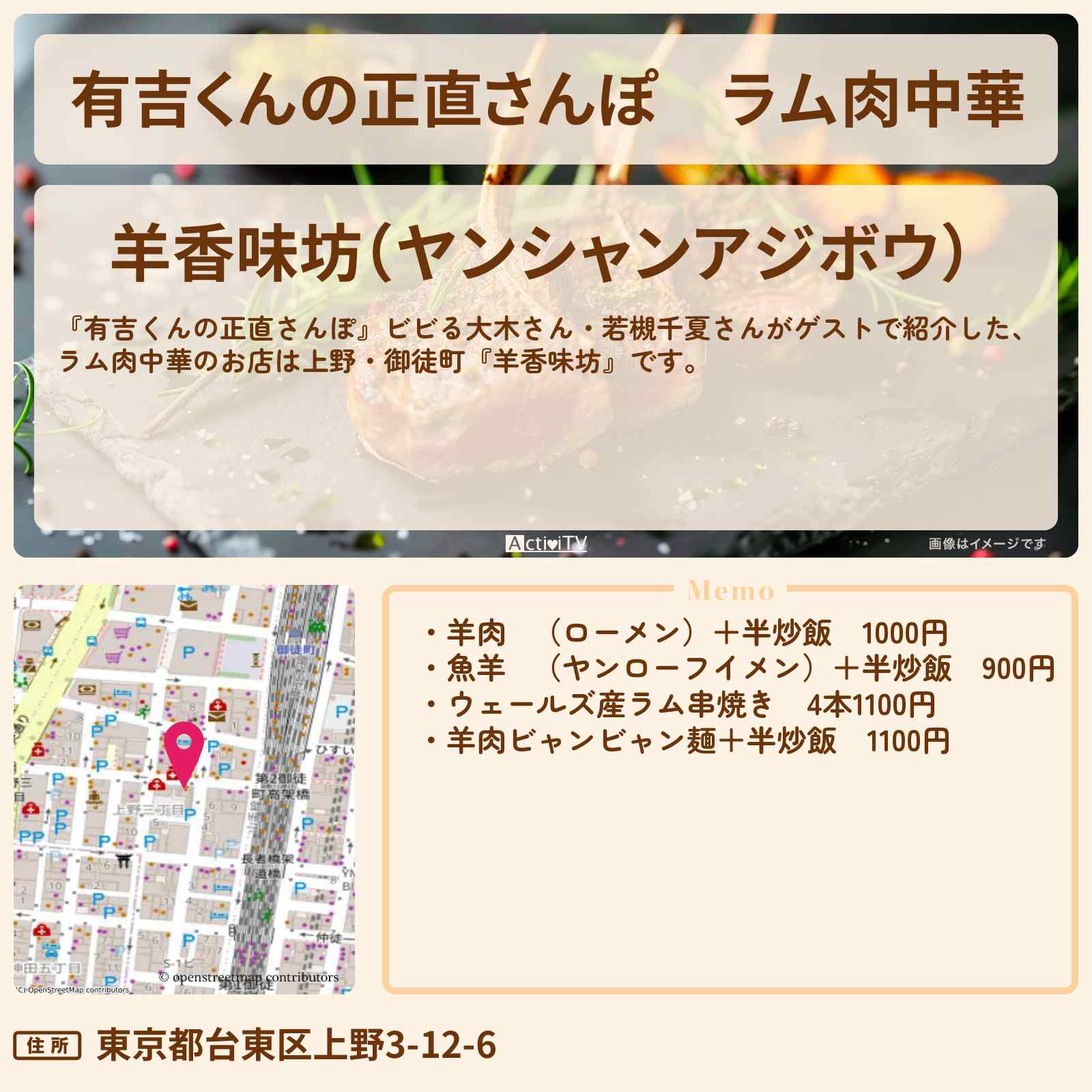 | 住所 | 東京都台東区上野3-12-6 |