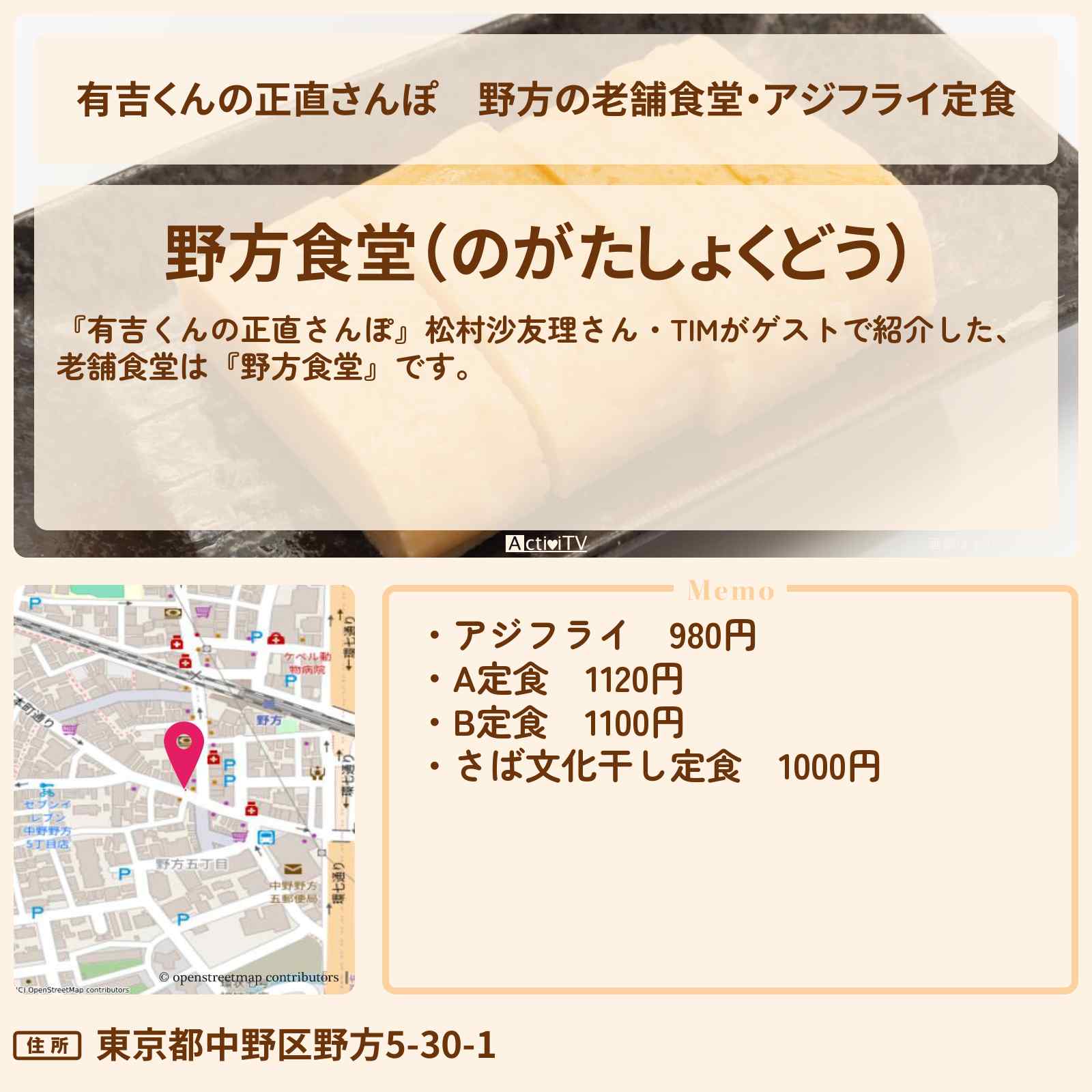 老舗食堂のアジフライ「野方食堂(のがたしょくどう)」