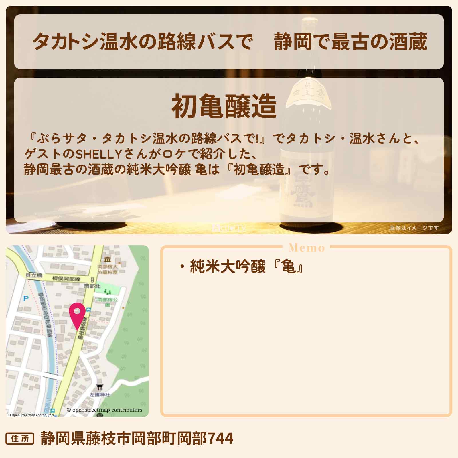 初亀(はつかめ)は1636年に創業した静岡最古の酒蔵です。「静岡の食と人に寄り添う酒」をコンセプトに掲げ、蔵に湧き出る清冽な南アルプスの伏流水を生かした優しい旨酒を、心を込めて丁寧に醸しています。…