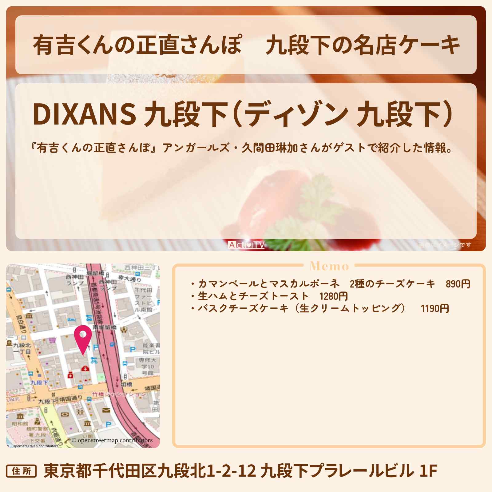 九段下の名店ケーキ「DIXANS 九段下(ディゾン 九段下)」