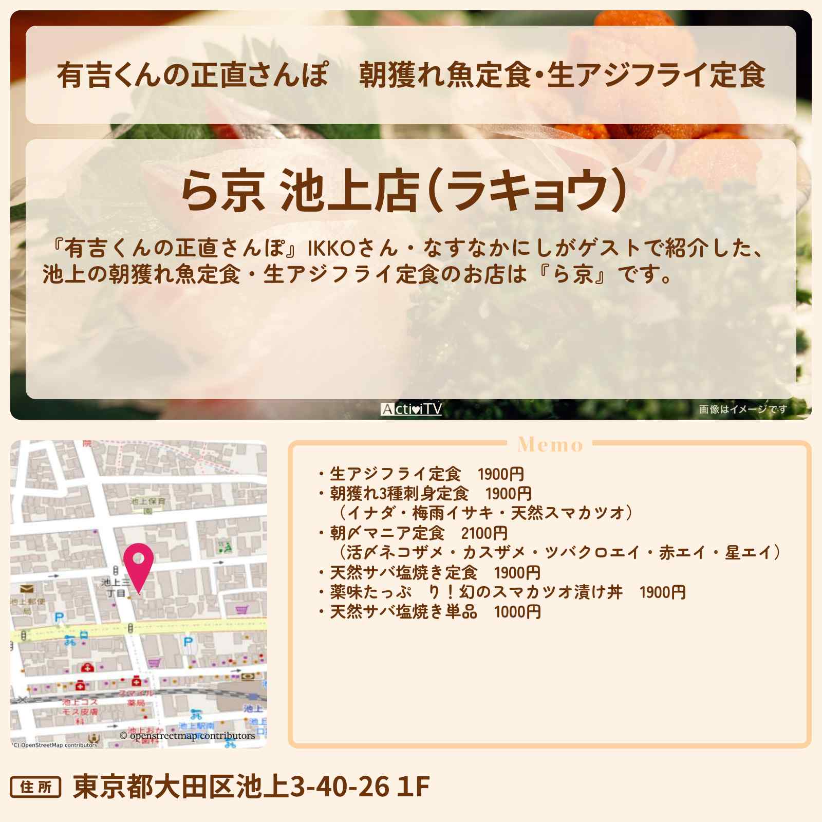 | 住所 | 東京都大田区池上3-40-26 1F |
