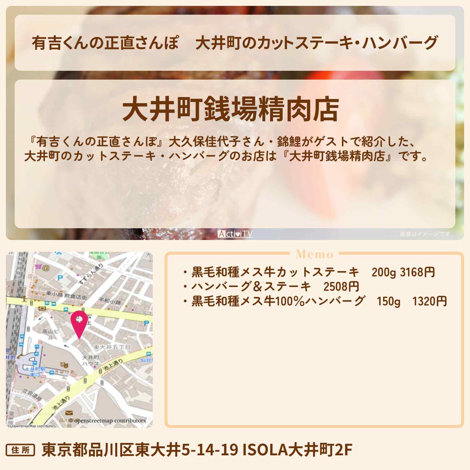 カットステーキ・ハンバーグ「大井町銭場精肉店」