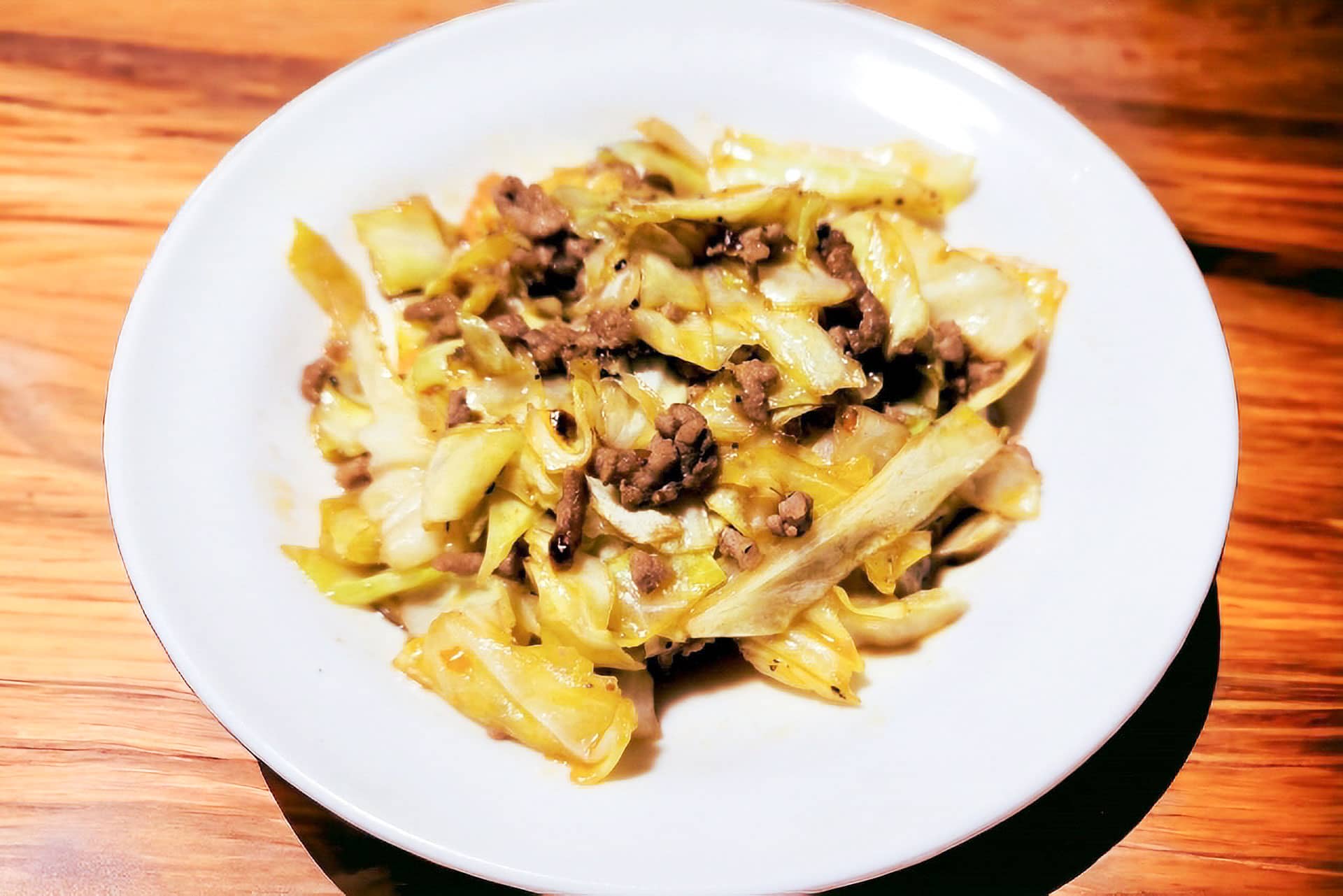 合わせ調味料の砂糖としょうゆが加わることで、辛さの中にも程よい甘さと旨味が溶け合い、炒めたキャベツと絡み合います。強火で手早く炒めることで、キャベツはシャキッとした食感を残しつつ、全体に味がよく馴染みます。